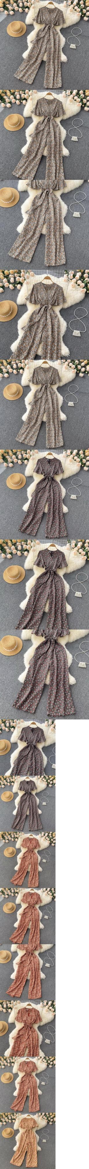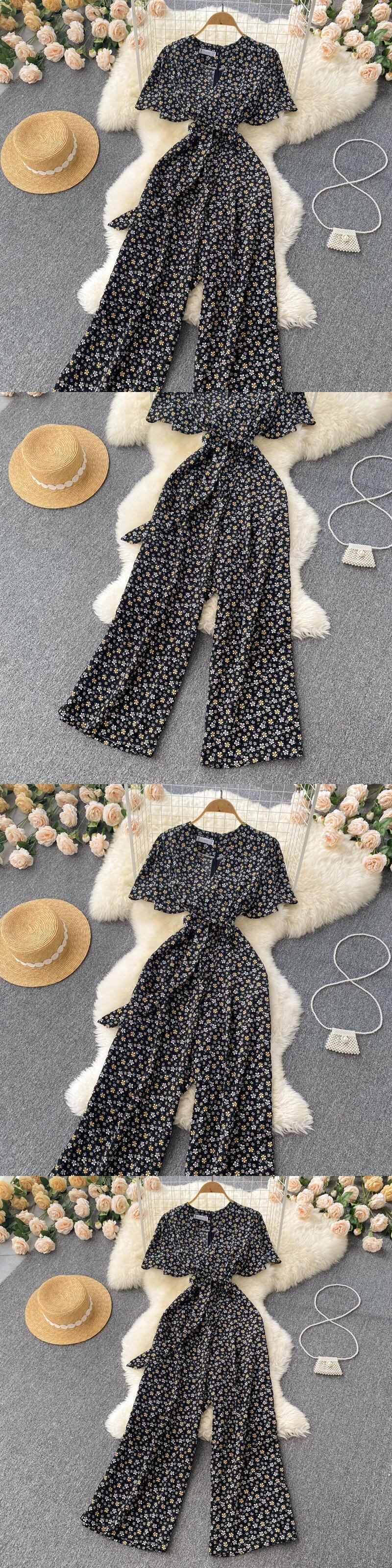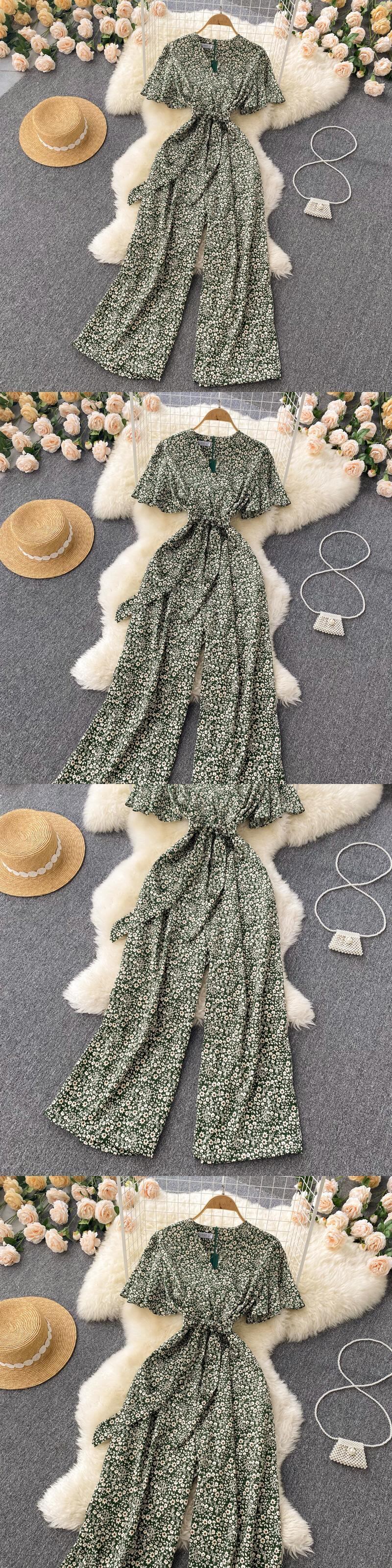 バケーション ビーチ ロンパース 半袖 Vネック 伸縮性 シャーリング ルーズ ボヘミアン プリント ジャンプスーツ 夏 2022 ショート ハーフスリーブ エラスティック サマー 夏物 Abe14488001759