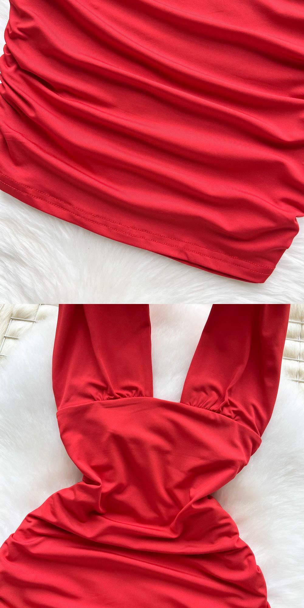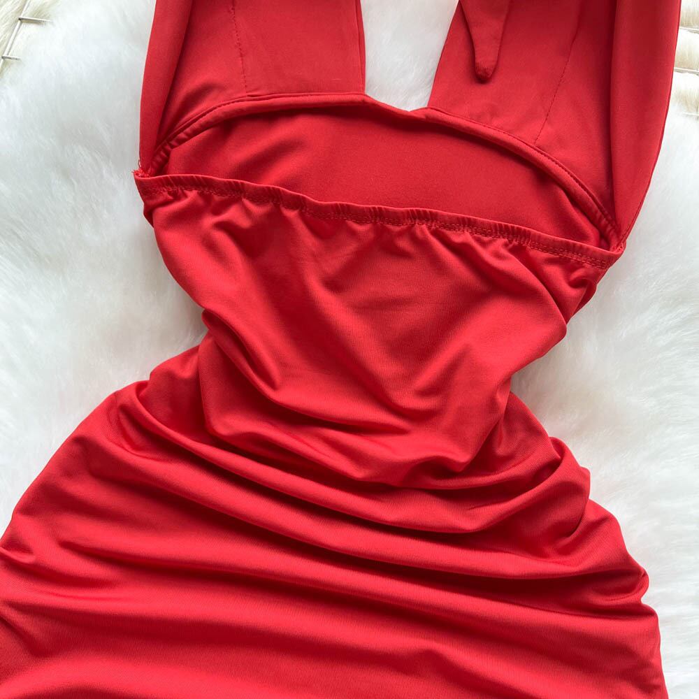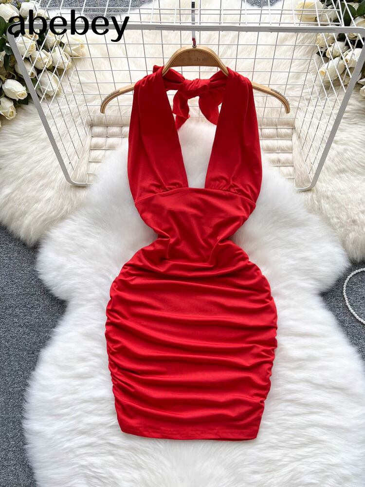 女性のセクシーなホルターネックパーティークラブボディコン背中の開いた赤いタンクミニドレス 2022 夏服ストリート レッド サマー 夏物 Abe55362761037