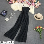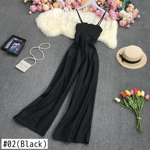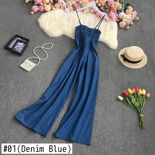2022 春秋ノースリーブオフショルダーデニムジャンプスーツハイウエストプリーツ無地カジュアルワイドレッグジャンプスーツ ハイウェスト スプリング 春物 オータム 秋物 ワイドパンツ ソリッドカラー Abe76211456786
