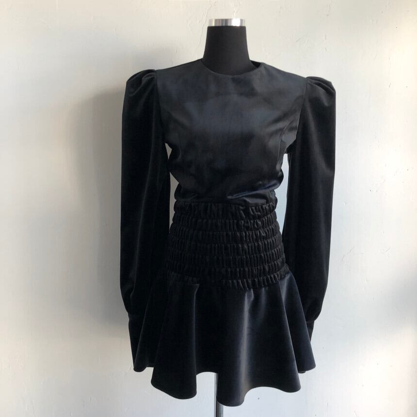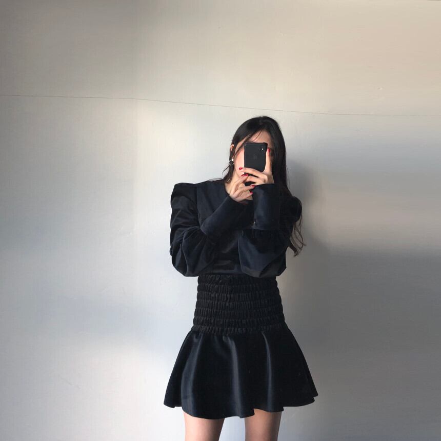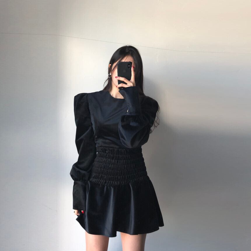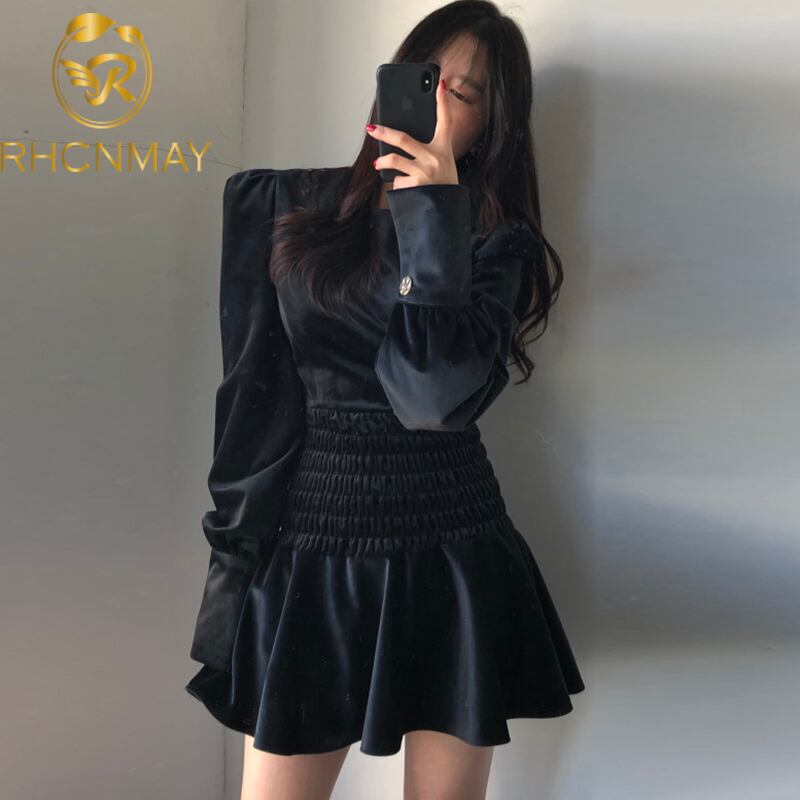 秋の女性のドレスラウンドネックプリーツウエストパフスリーブベルベットフリルセクシーなドレス女性服パートナイト オータム 秋物 Oネック Rhc5310612183