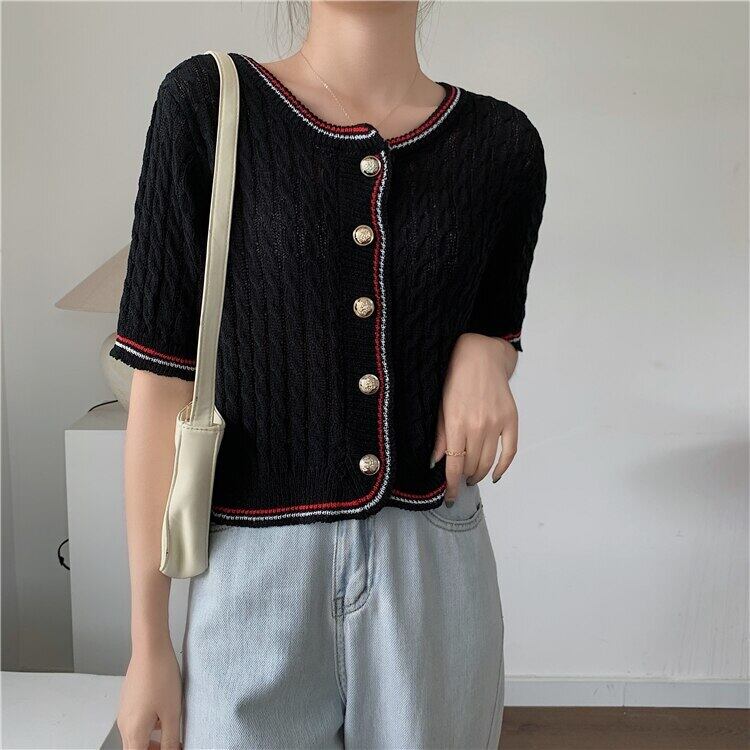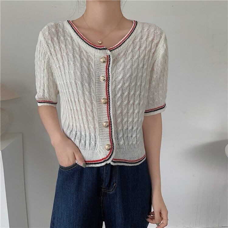 薄い夏ニットカーディガンセーター女性半袖 O ネックシングルブレストニットトップス T Shirtts ショート ハーフスリーブ サマー 夏物 Oネック Tシャツ Rhc87565214247