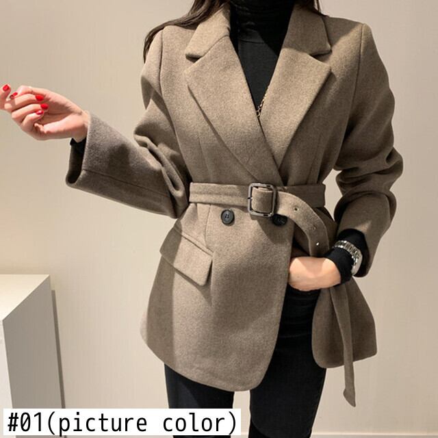 シックな女性の秋のウールのジャケットベルトスリムウエストコート 2021 長袖ノッチ付き襟生き抜くトップス ロング オータム 秋物 ハーネス Rhc2759992707