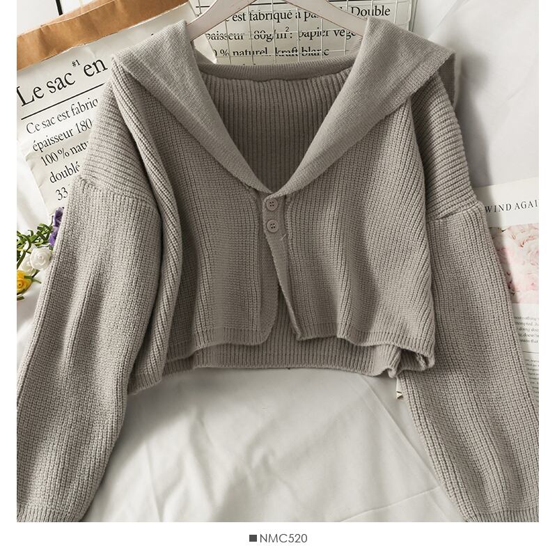 すべてマッチセーター女性秋セーラーカラー 2 ボタンショートニットトップスルーズロングスリーブカーディガン 長袖 オータム 秋物 Abe52652319844