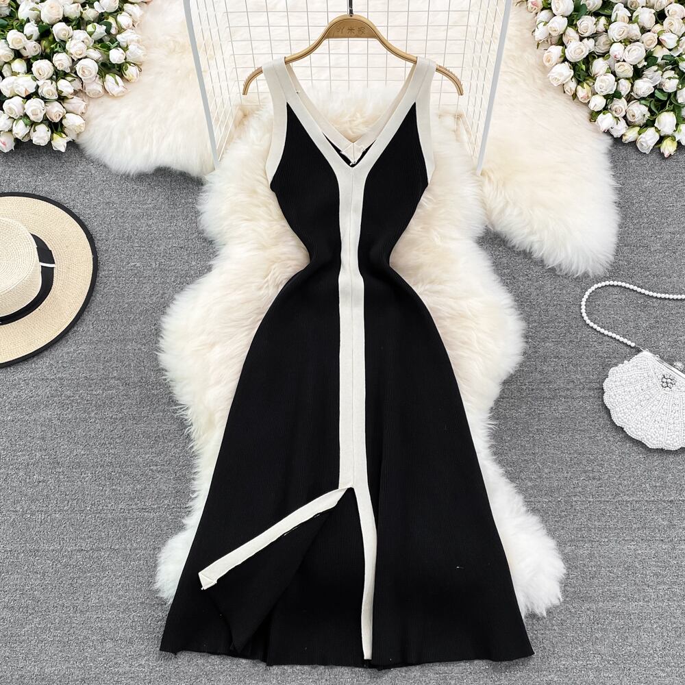 ハウスのパーティードレス女性 V ネックスパゲッティストラップニットサンドレスセクシーなボディコン女性の夏のセータードレス サマー 夏物 Vネック Abe15148004408