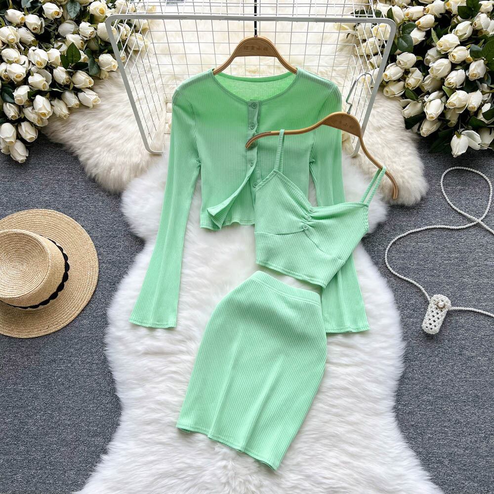 甘い女性 3 点セット無地ピンク夏カーディガン セーター ショート ストラップ キャミソール 2 点セット + ボディコン ミニ スカート 大人ガーリー スウィート キュート カジュアル サマー 夏物 ソリッドカラー Abe82892407187