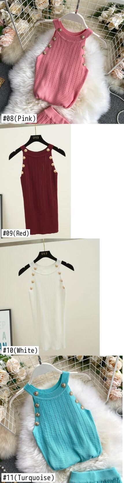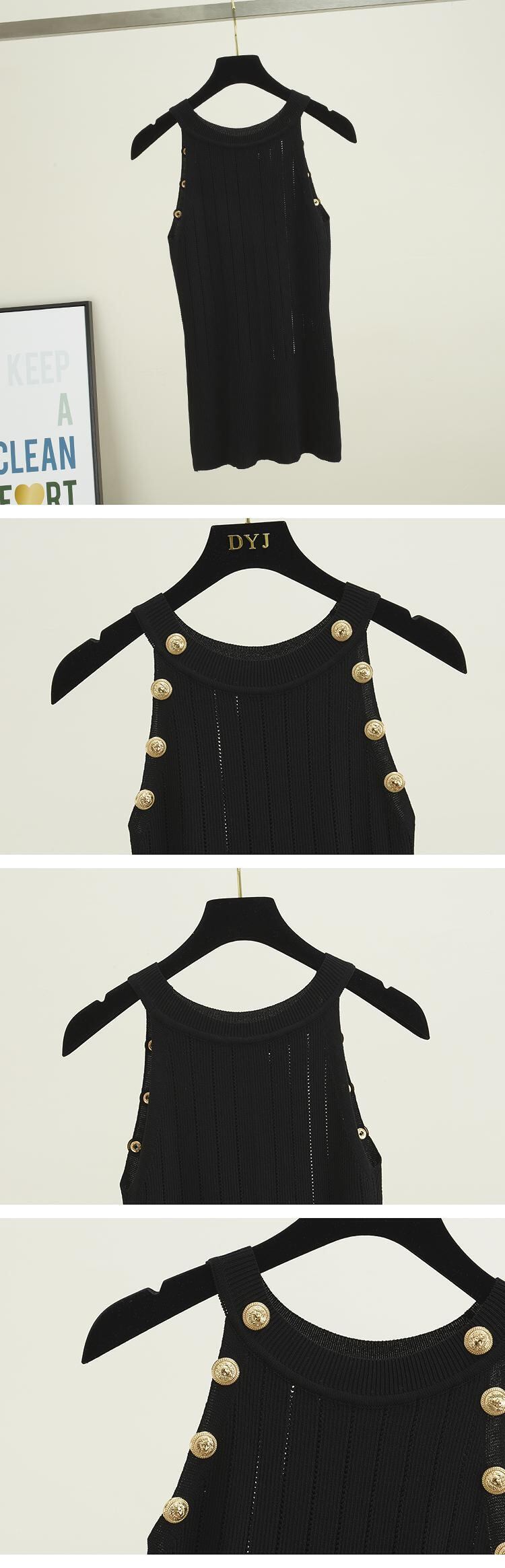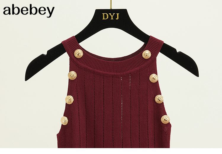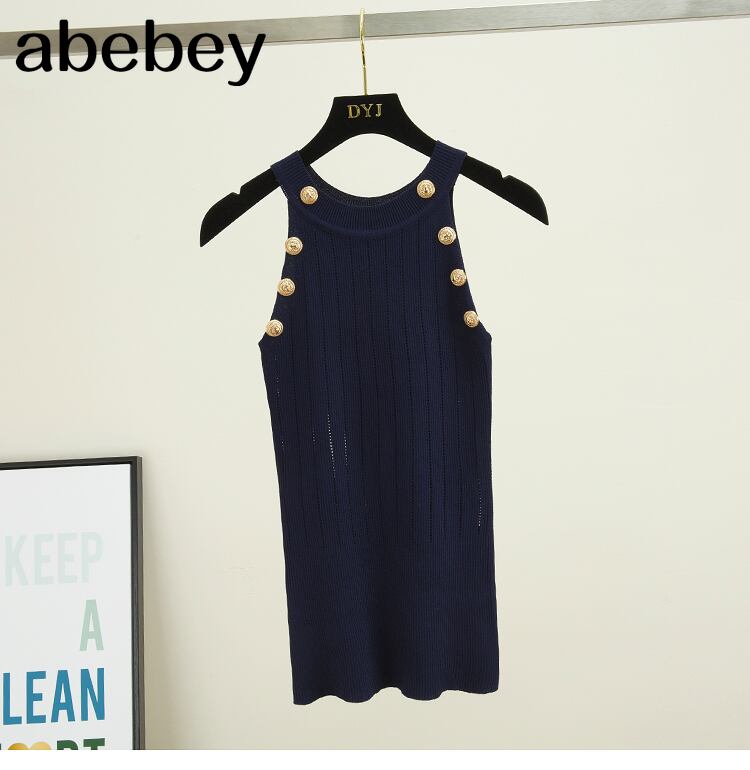 女性soildボタン中空薄いニットタンクトップ女の子ダブルブレストニットノースリーブセータータンク Abe42328678907