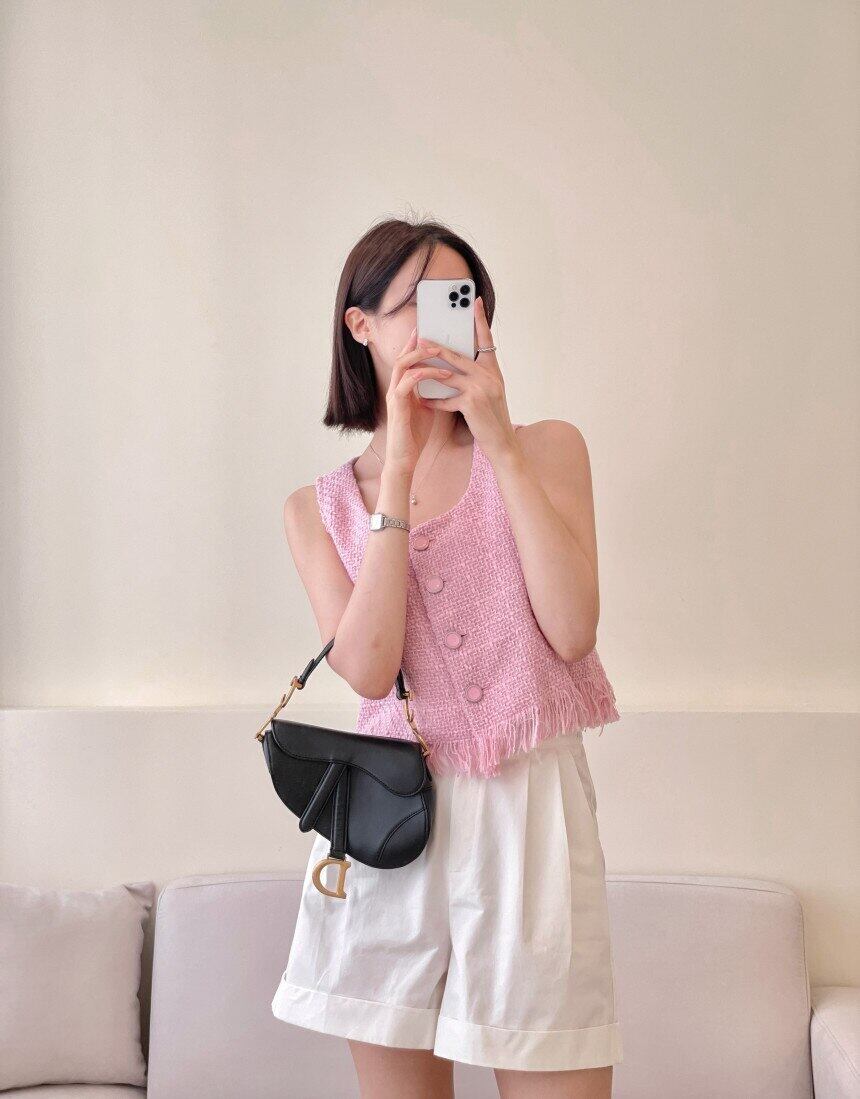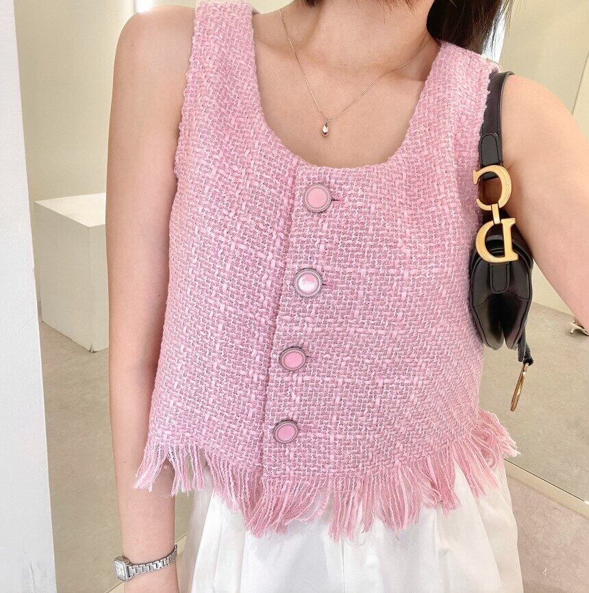 電話ツイードタンクトップ女性の夏のスクエアカラーシングルブレストブラウスシックなシンプルなすべてのマッチベストトップス サマー 夏物 スクウェア Rhc89088031082