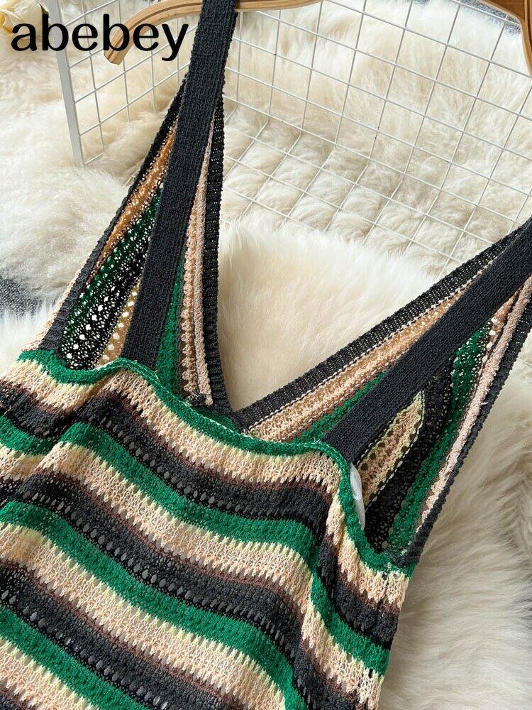 かぎ針編みマキシドレスニットカットアウトドレス Jurk 婦人ビーチドレス女性 2022 ストラップノースリーブ Vestidos Abe80232880191
