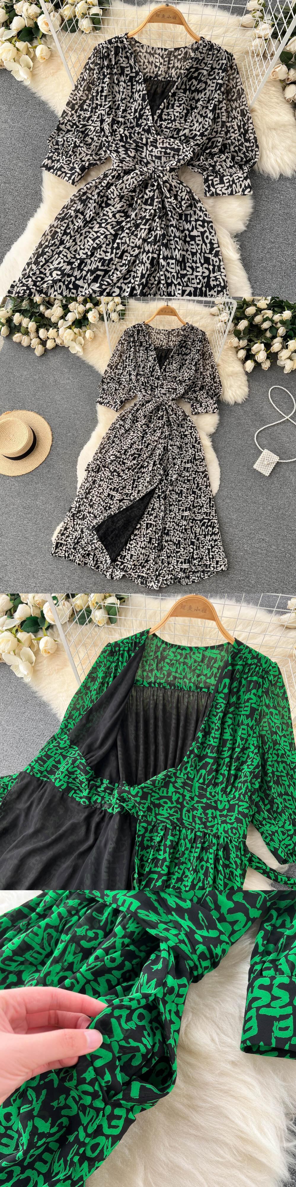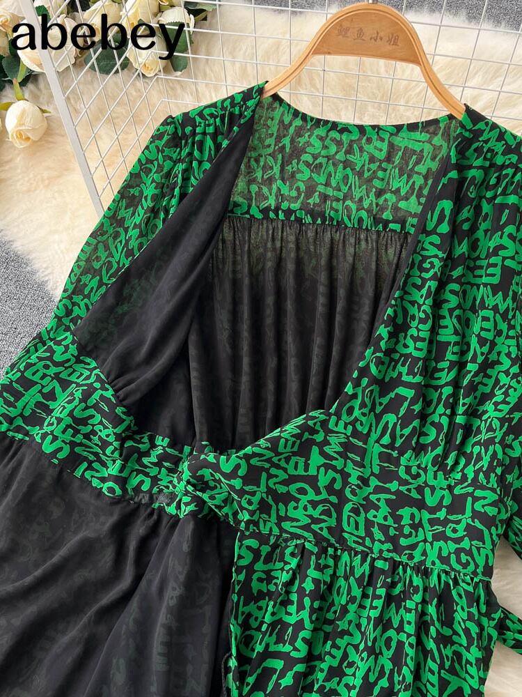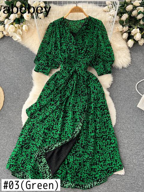 グリーン女性サマードレス 2022 半袖無地サッシ V ネックミディ A ラインドレス ショート ハーフスリーブ 夏物 Vネック Aライン ソリッドカラー Abe33178692449