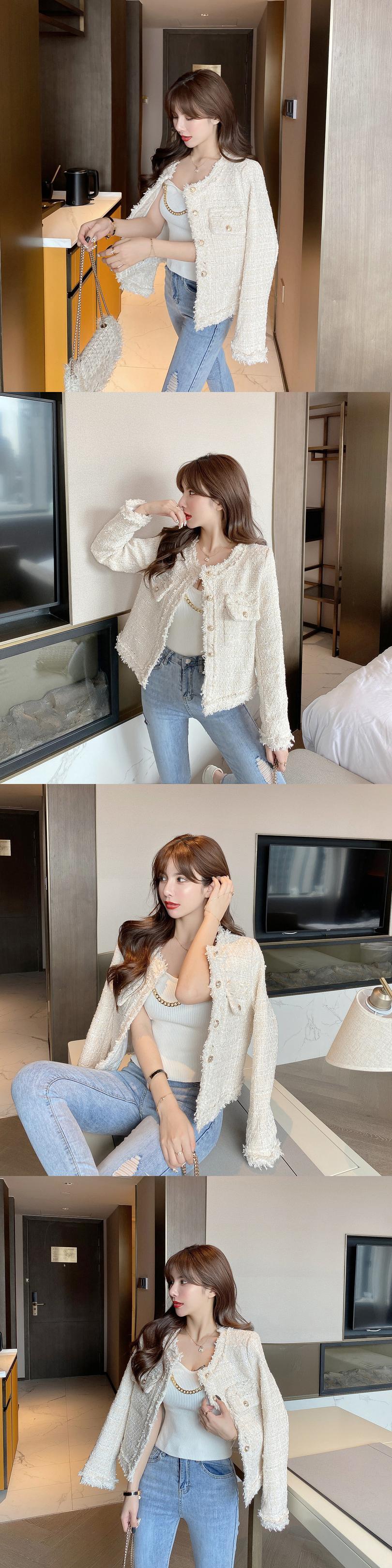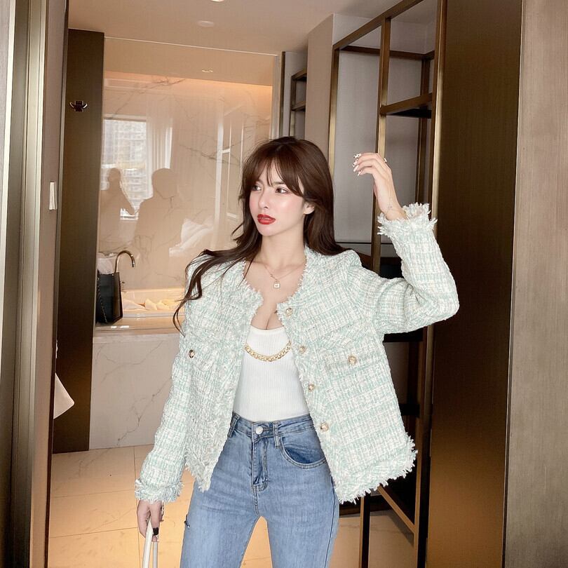 気質セレブスタイルツイードショートジャケット女性 2021 秋冬レトロジャケット女性シンプルなトップ オータム 秋物 ウィンター 冬物 Rhc25477774677