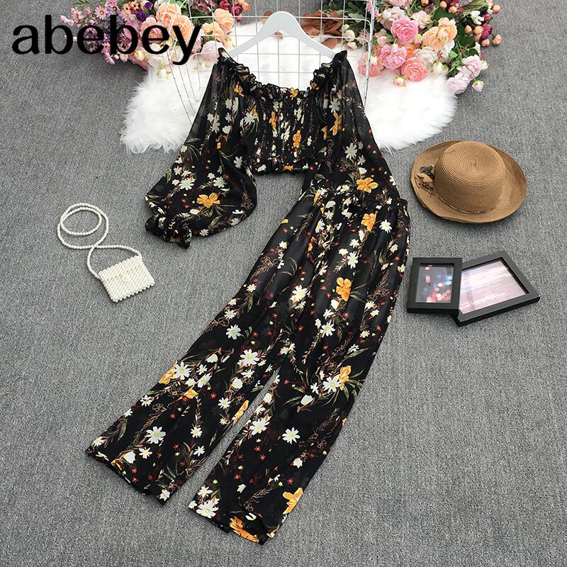 2022年夏オールマッチスクエアカラーパフスリーブシャツ+ハイウエストワイドレッグパンツ2点セット ハイウェスト サマー 夏物 ワイドパンツ スクウェア Abe79051482982