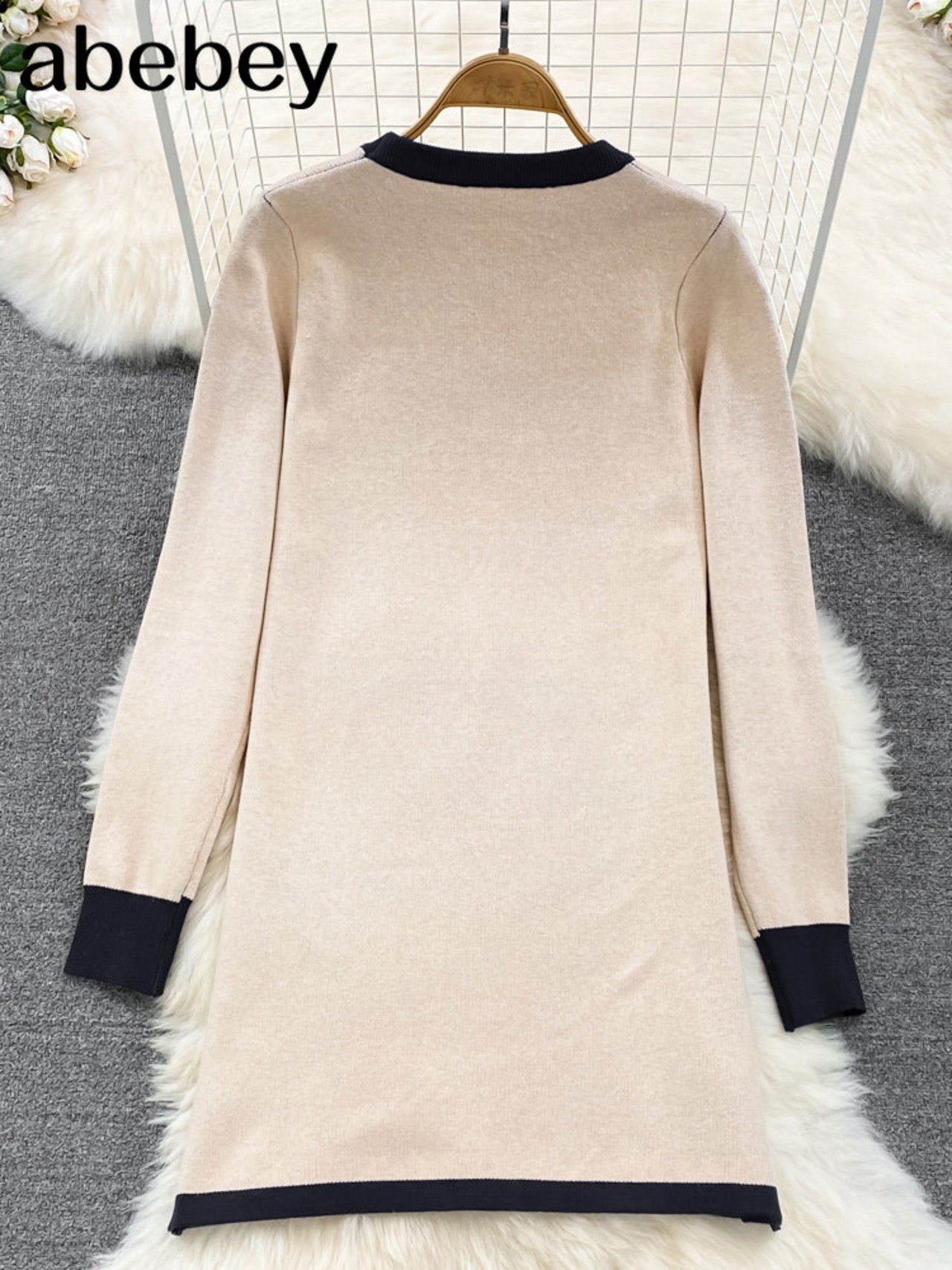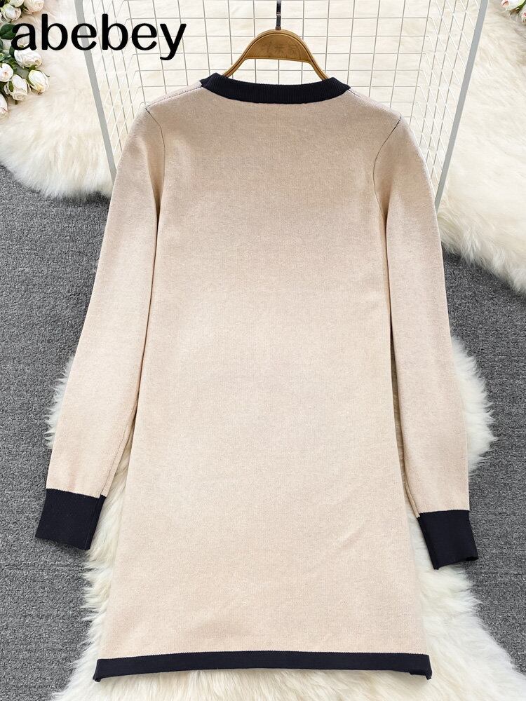 女性ニット長袖ドレス 2022 秋冬黒スリムミニドレスパーティーセーターボディコンドレス服 ロング ブラック オータム 秋物 ウィンター 冬物 Abe64109971177