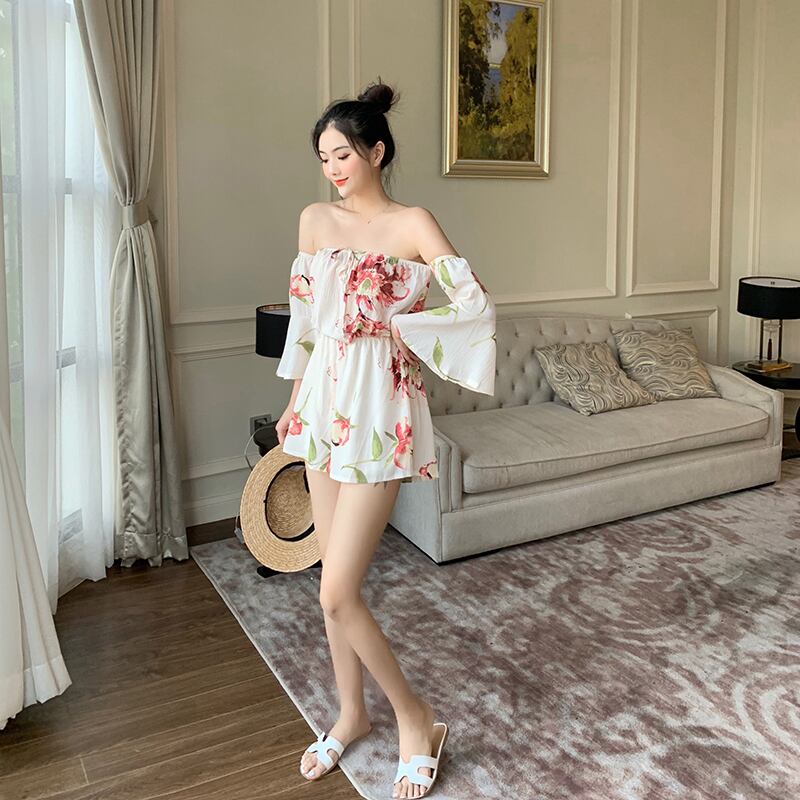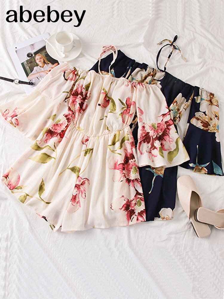 2022 女性ホルターフローラル & ホリデーフラワーオーバーオールボヘミアンオフショルダービーチジャンプスーツワイドレッグシフォンロンパース 花柄 ワイドパンツ フラワーデザイン Abe92863480957