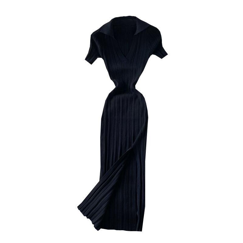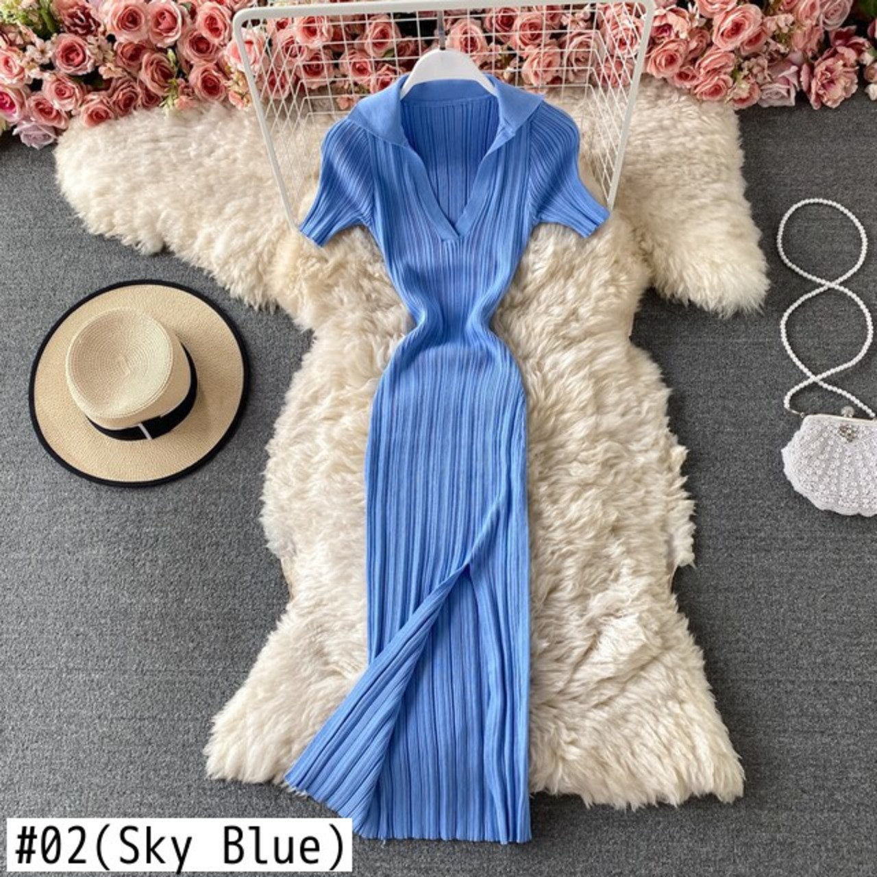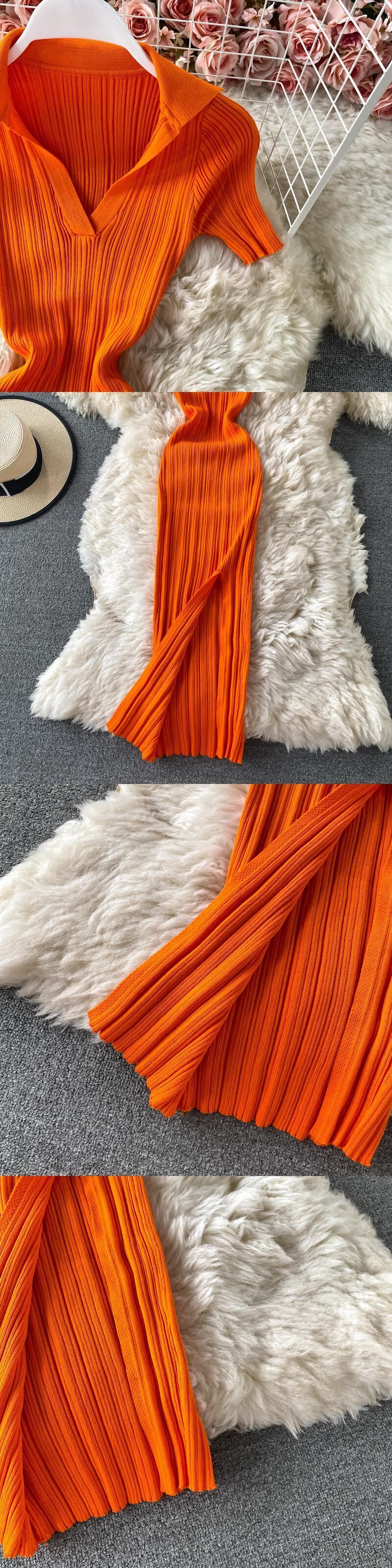スリム V ネックのセクシーなニットドレス 2022 夏レトロスリムウエストタイトなお尻ニットドレスサイドスリットセクシーな女性のドレス サマー 夏物 Vネック Abe296973756