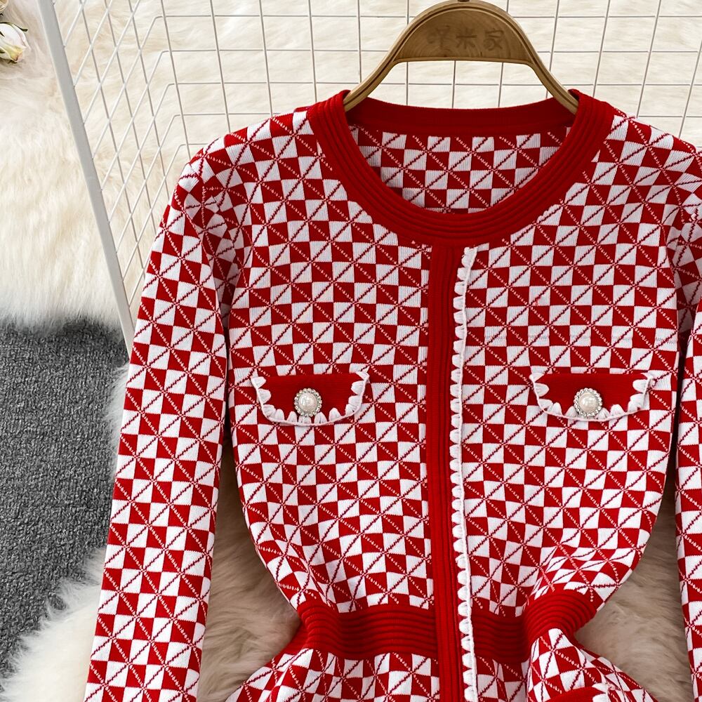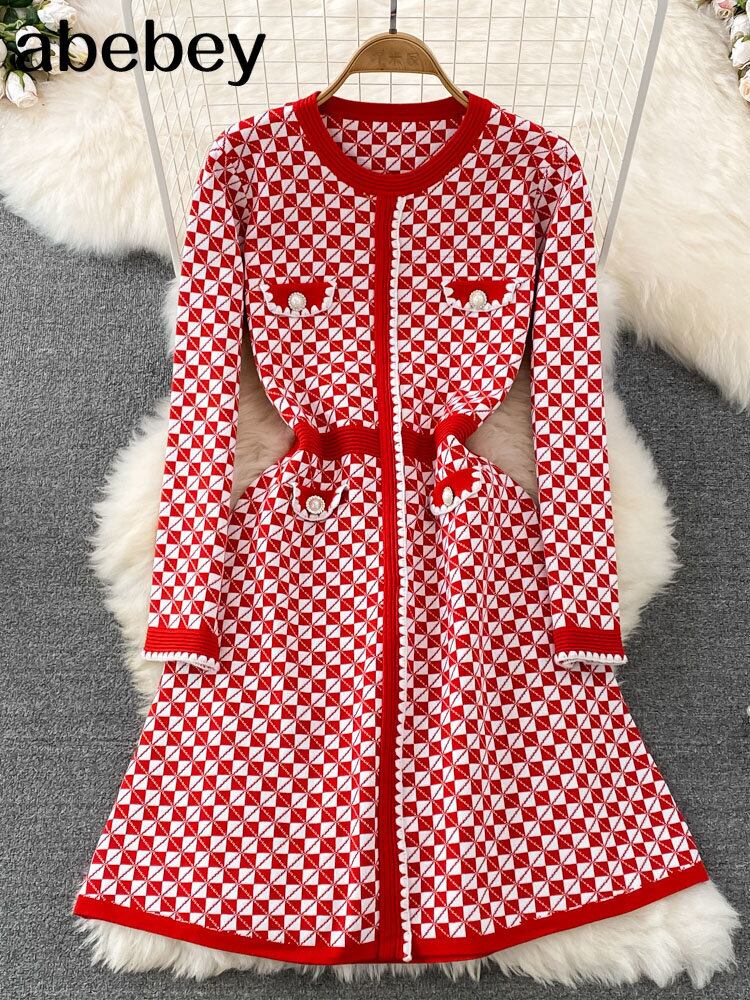 女性ニット A ラインドレス長袖 o ネック弾性スリムドレス秋冬セクシーなボディコン暖かいセータードレス ロング エラスティック 伸縮 オータム 秋物 ウィンター 冬物 Oネック Aライン Abe34482796392