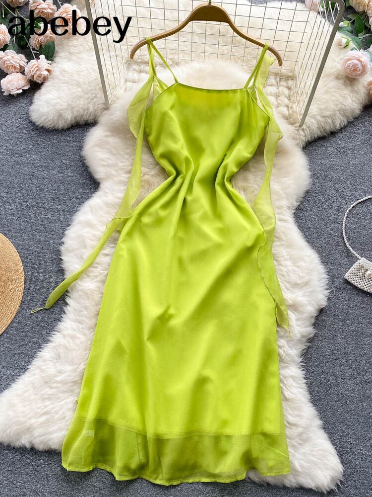 背中の開いたマキシドレスセクシーなグリーンスパゲッティストラップスリムドレス女性ロングクラブパーティービーチドレス夏ブルー衣装 2022 サマー 夏物 Abe11319796754