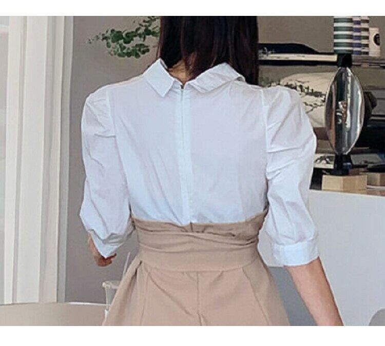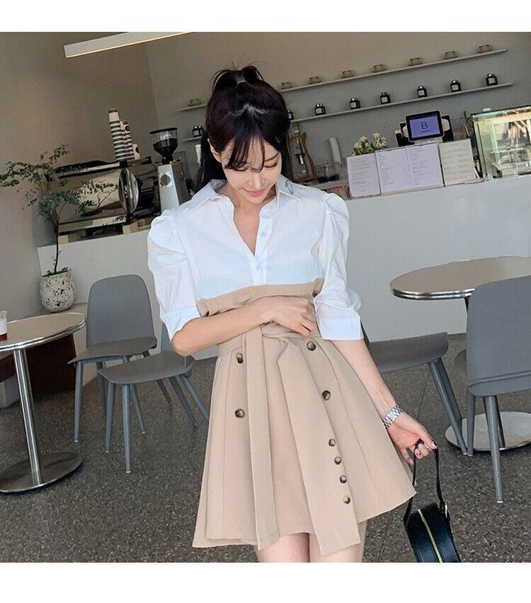夏のレディースドレス 2020 シャツドレス 3/4 スリーブダブルブレストベルトパッチワークドレス女性 サマー 夏物 ハーネス Rhc48625551977