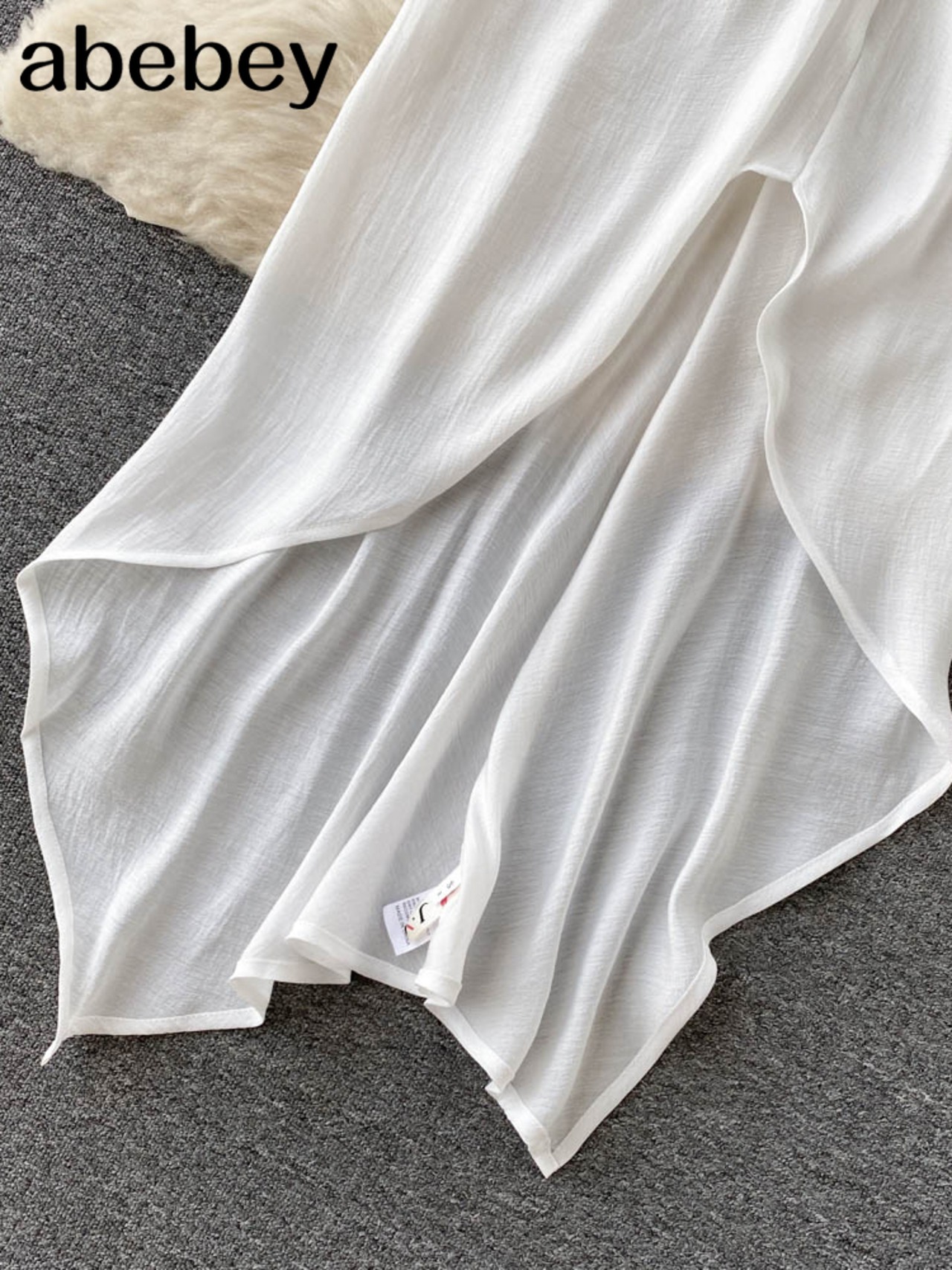 パーティークラブ不規則な無地ドレス女性ジッパー夏 2022 白のセクシーなスリムシャーリングフレンチスタイルロングドレス ホワイト サマー 夏物 ソリッドカラー Abe97551160224