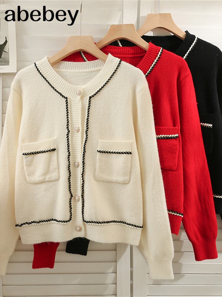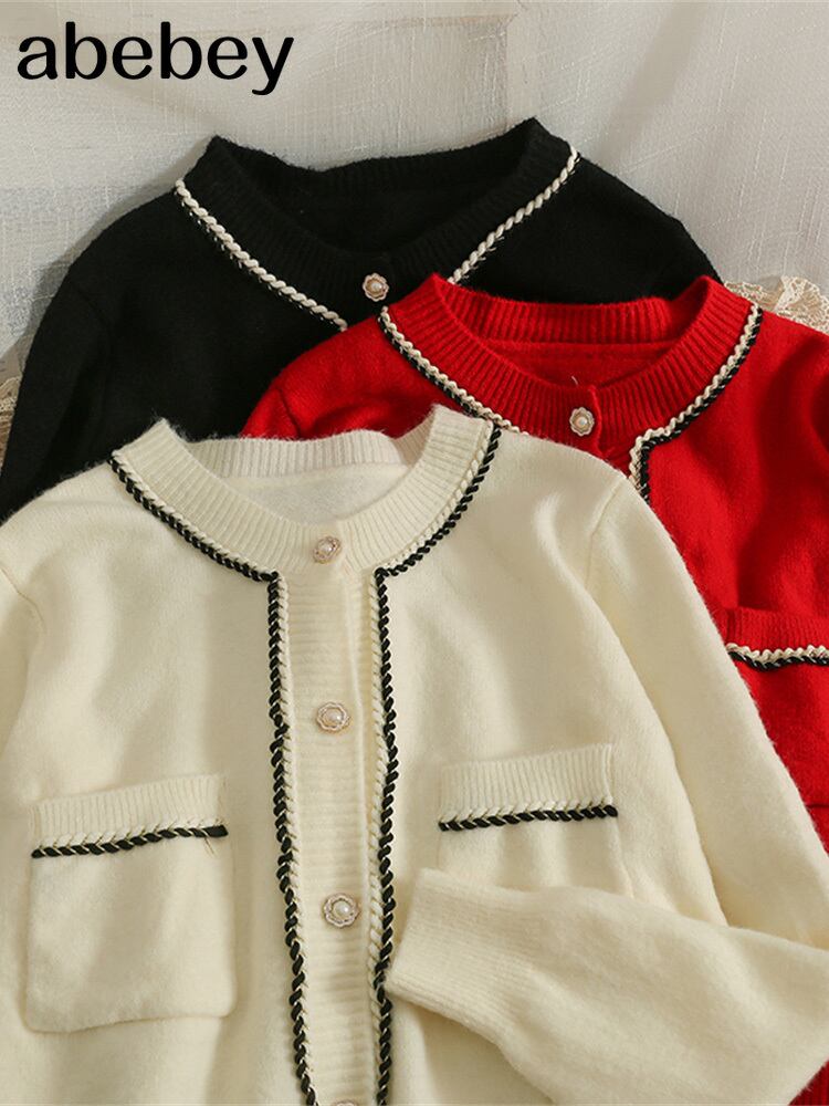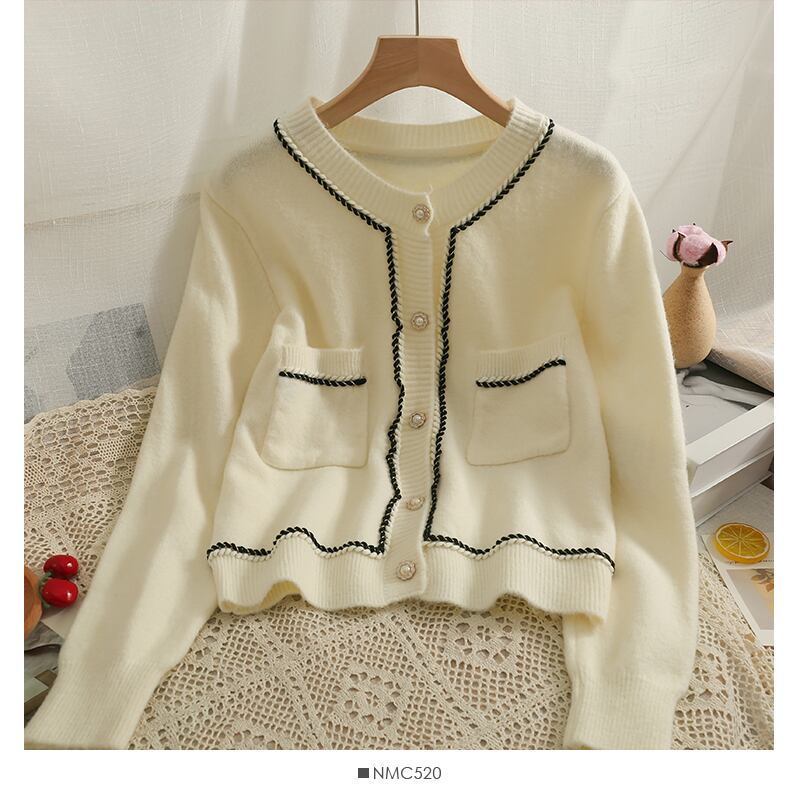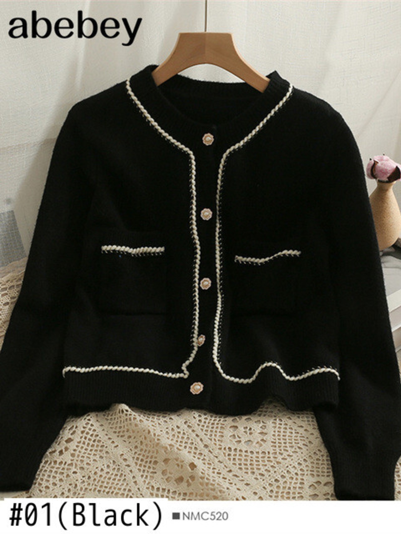 秋服 5 ボタン小さな香り気質 O ネック長袖ニットカーディガンセーター女性ポケットコート ロング オータム 秋物 Oネック Abe87901933198