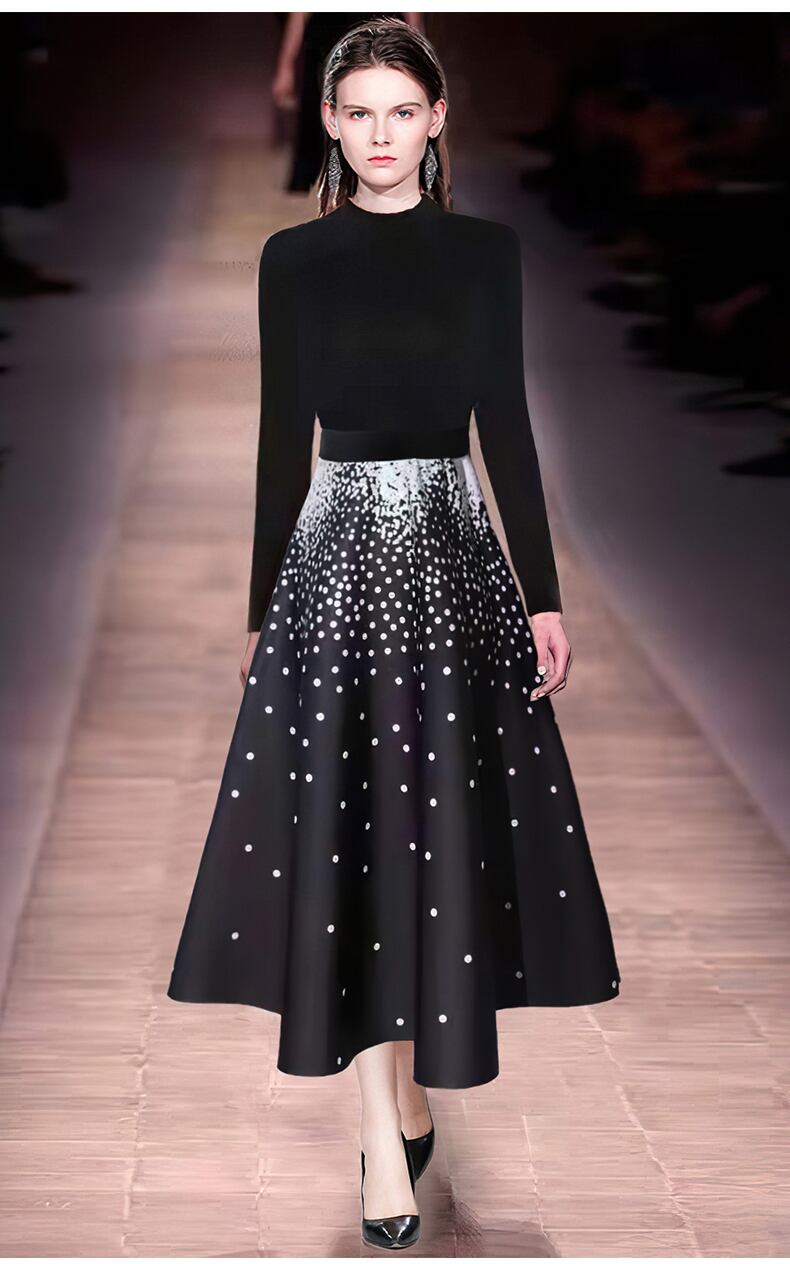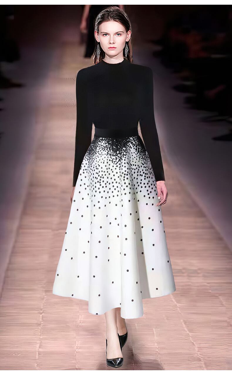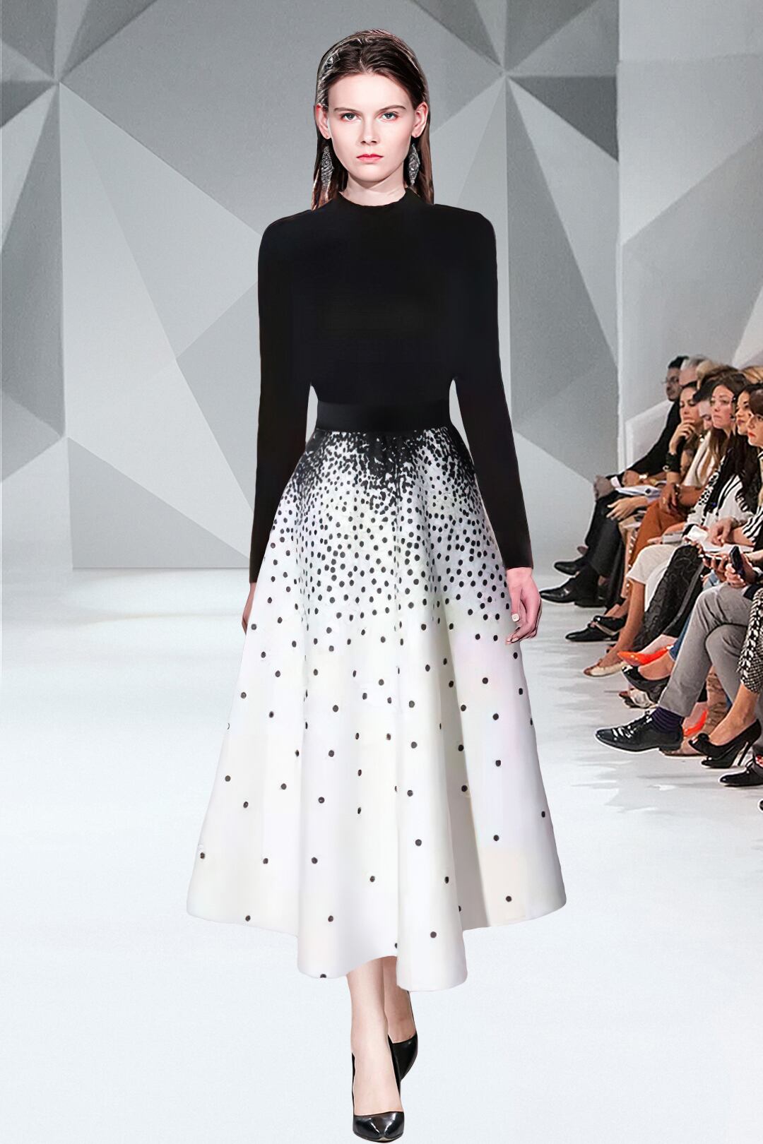 2021 女性セーターツーピースセット春秋長袖ニットトップ + ドットロングスカートの女性の服 スプリング 春物 オータム 秋物 Rhc10445377378