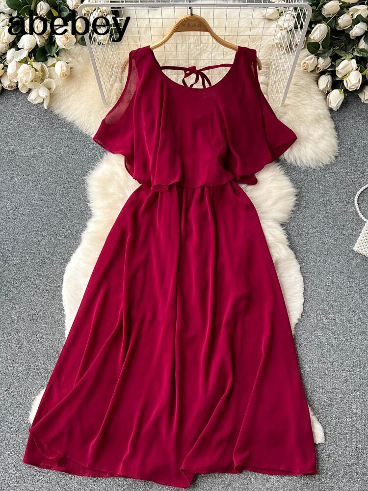 グリーン/ブルー/ホワイト 2022 サマードレス半袖シフォン無地ドレス女性半袖ビーチドレス衣装 ショート ハーフスリーブ 夏物 ソリッドカラー Abe17021035454