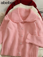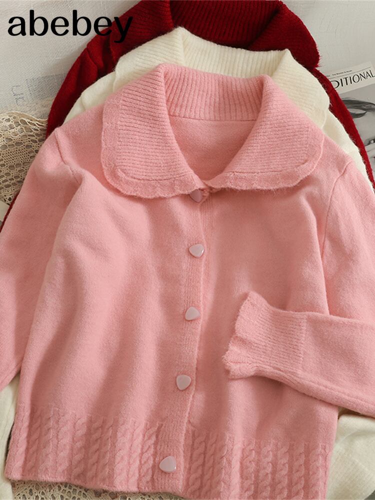 女性ターンダウン襟ニットカーディガンピンクソフトニット女性のセーターコート 2022 秋のルーズセーターカーディガントップス オータム 秋物 Abe61232033660
