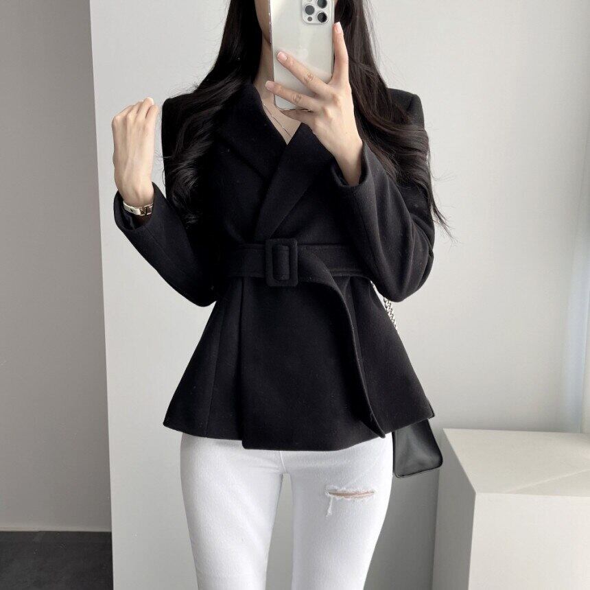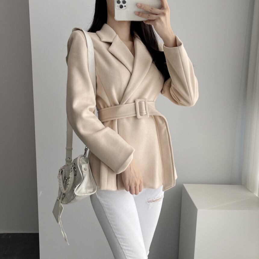 サッシ オフィス レディ ウール コート女性春シングル ブレスト ウール ジャケット緩い暖かい オーバー コート スプリング 春物 会社 学校 通勤や通学にも Rhc97492285670
