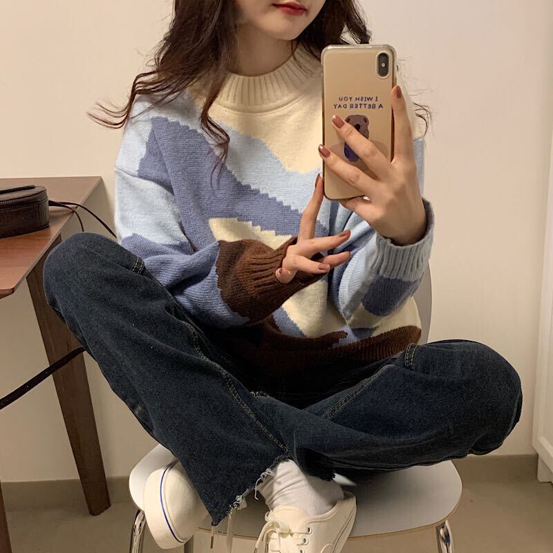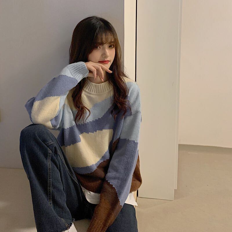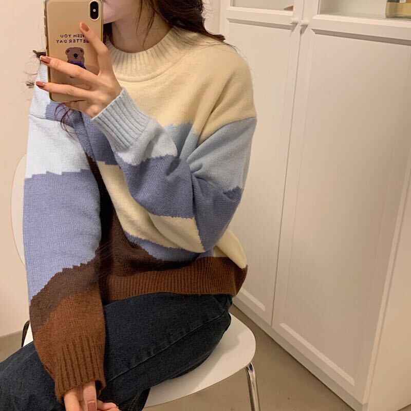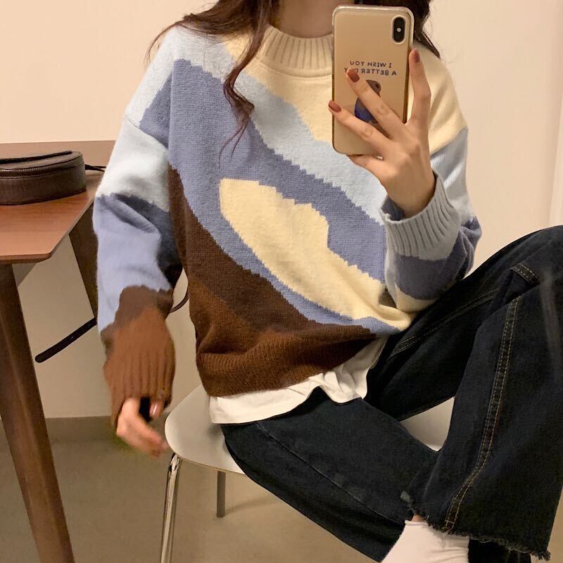 幾何学模様 ベーシック ヒット レギュラー 2022年 レディース 長袖 オールマッチ風 ヒット ホットセーター ロング Abe62325326626