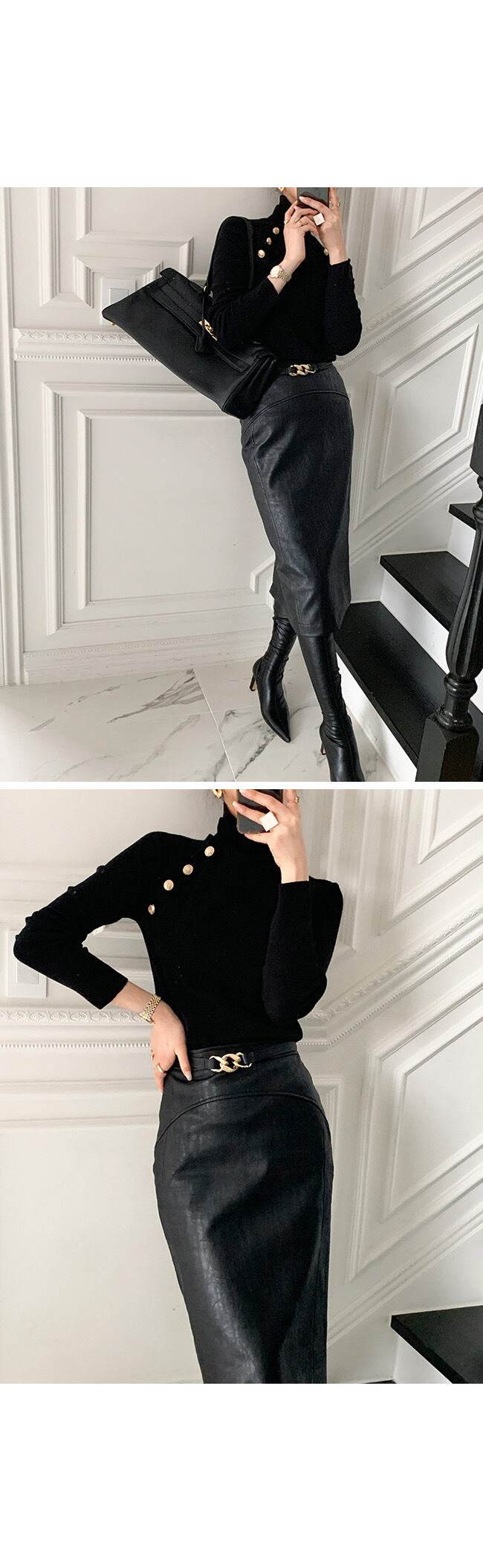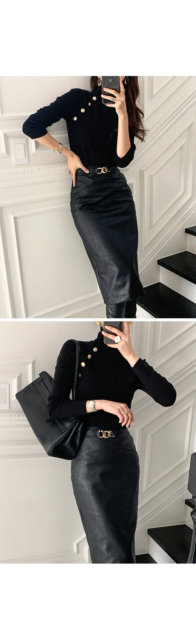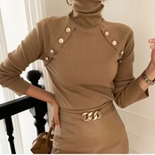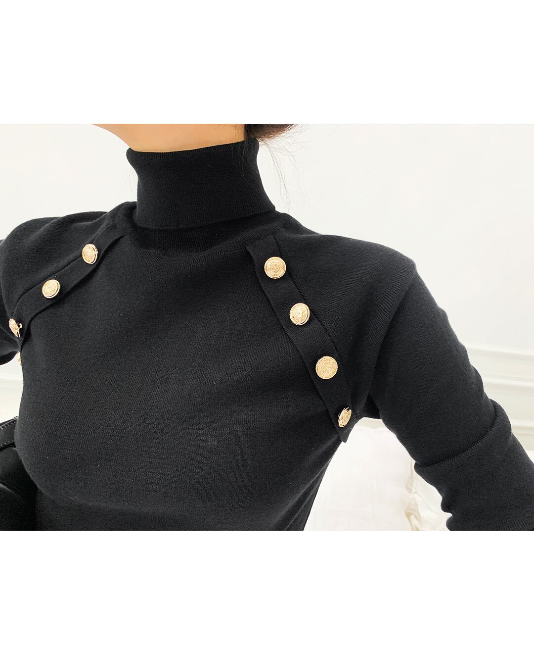 女性ニット Tシャツタートルネック金属ボタンスリムフィット Tシャツトップス固体長袖もみじニットプルオーバートップス ロング ソリッドカラー Rhc62863874048