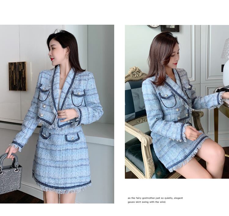 女性ツイードスカートセット 2022 秋の電話ビーズウールツイードジャケット + A ラインショートスカートスーツツーピースセット オータム 秋物 Aライン Rhc45402936133