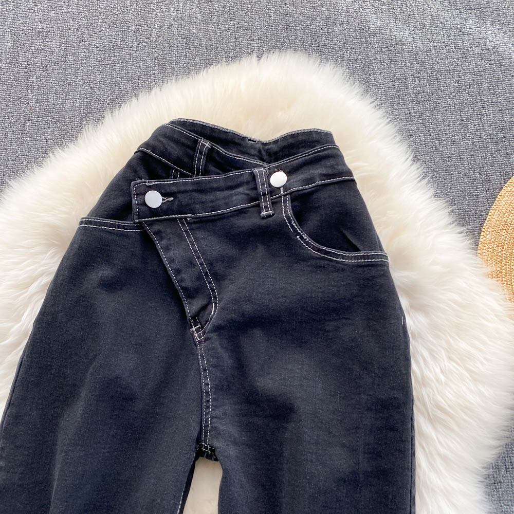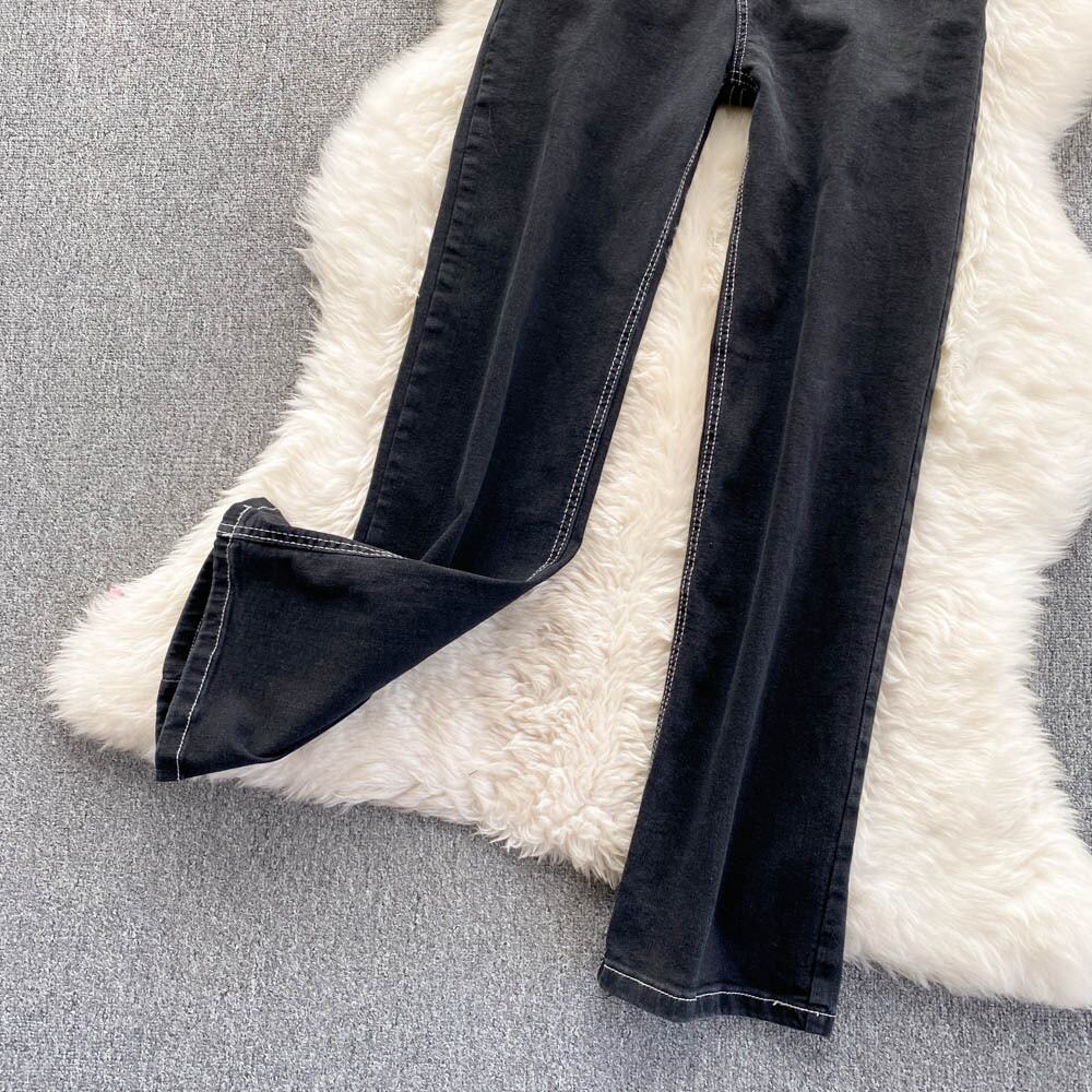 不規則なロングデニムパンツ女性レトロウエストルーズワイド脚ボトムス春ストレートジーンズのズボン スプリング 春物 ワイドレッグ ワイドパンツ Abe93769556609