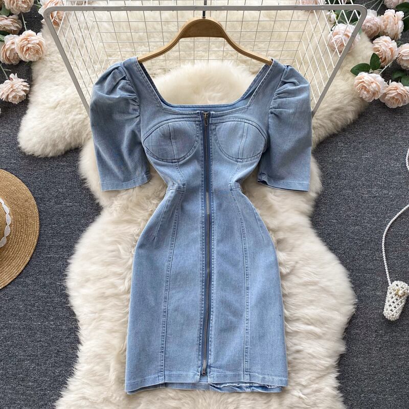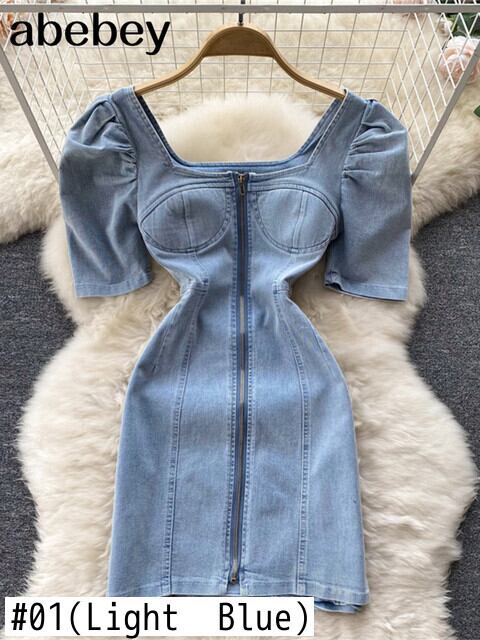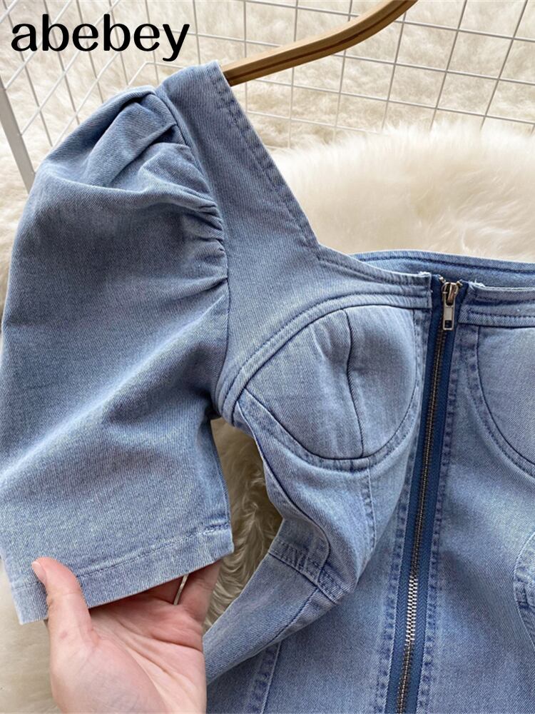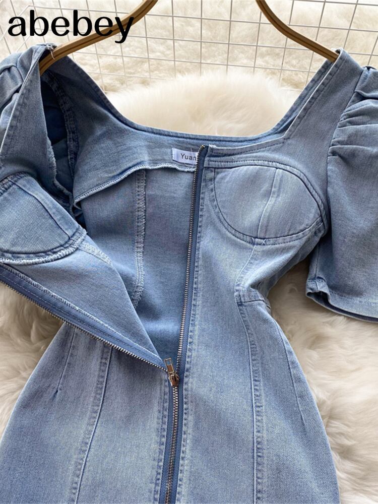 2022 夏の女性のデニムドレスパフスリーブジャカードドレスストリート原宿 A ラインミニ Frocks かわいい サマー 夏物 Aライン Abe90992114953