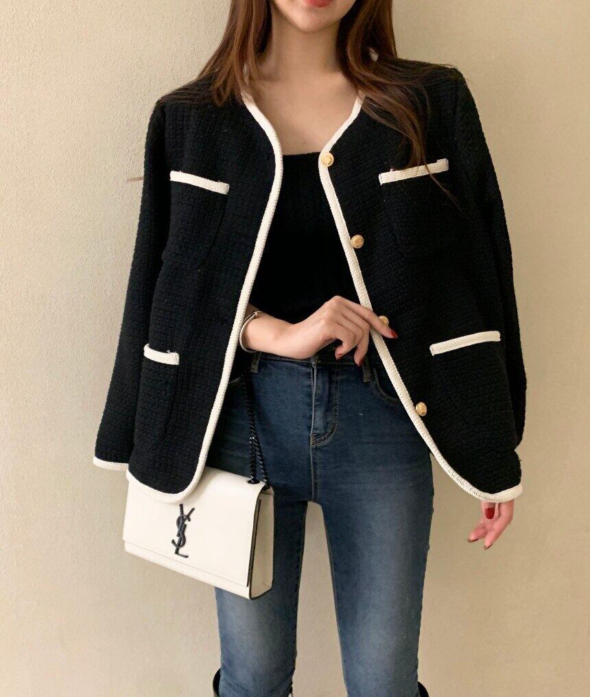 スウィートシックコート女性 2022 秋のコントラストカラーシングルブレストルーズロングスリーブ万能ショートジャケット 長袖 大人ガーリー キュート カジュアル オータム 秋物 Rhc62297244954