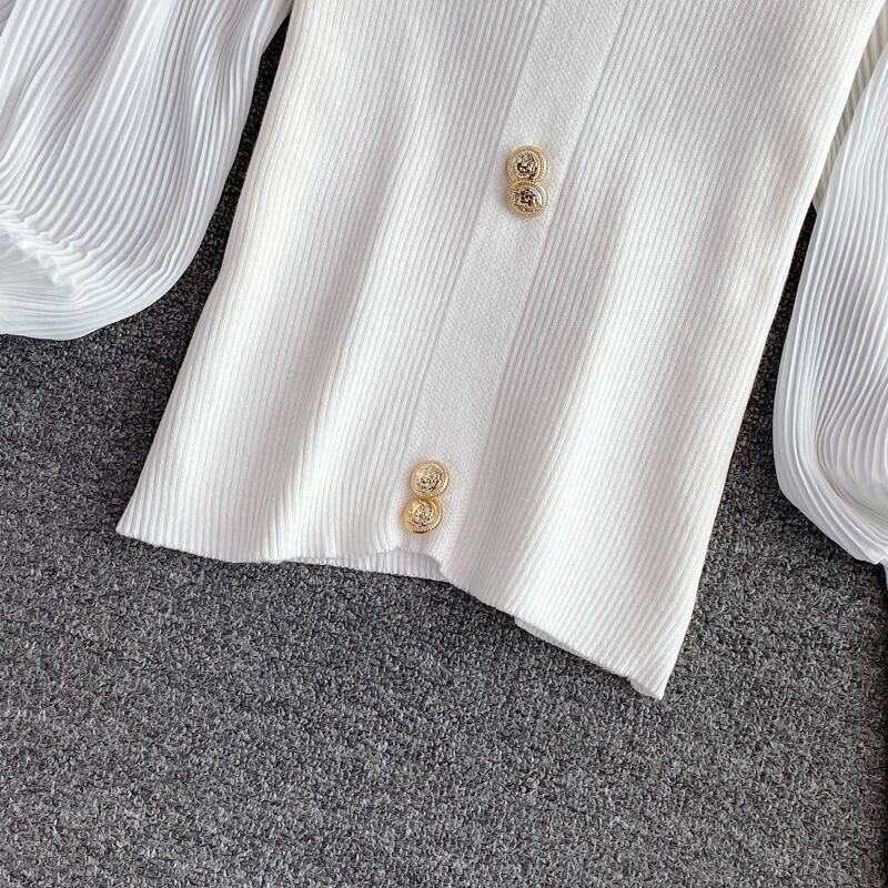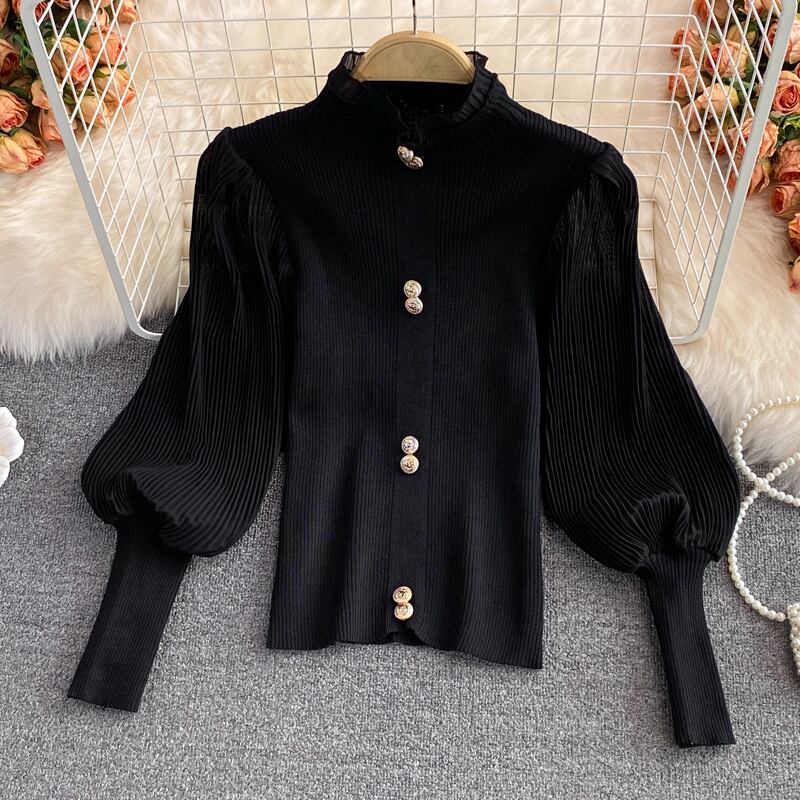 ハーフタートルネックセーター シフォンステッチ ロングフリルスリーブ シングルブレスト 秋ニット 栽培フリルベース ラッフル Rhc21122160