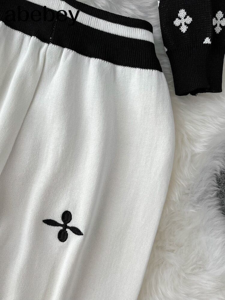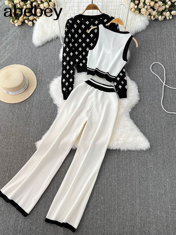女性トラックスーツシックな 3 点セット ニット白ラウンジ スーツ黒カーディガン セーター + ジョガー パンツ + ノースリーブ タンク トップ ホワイト ブラック Abe74869278914