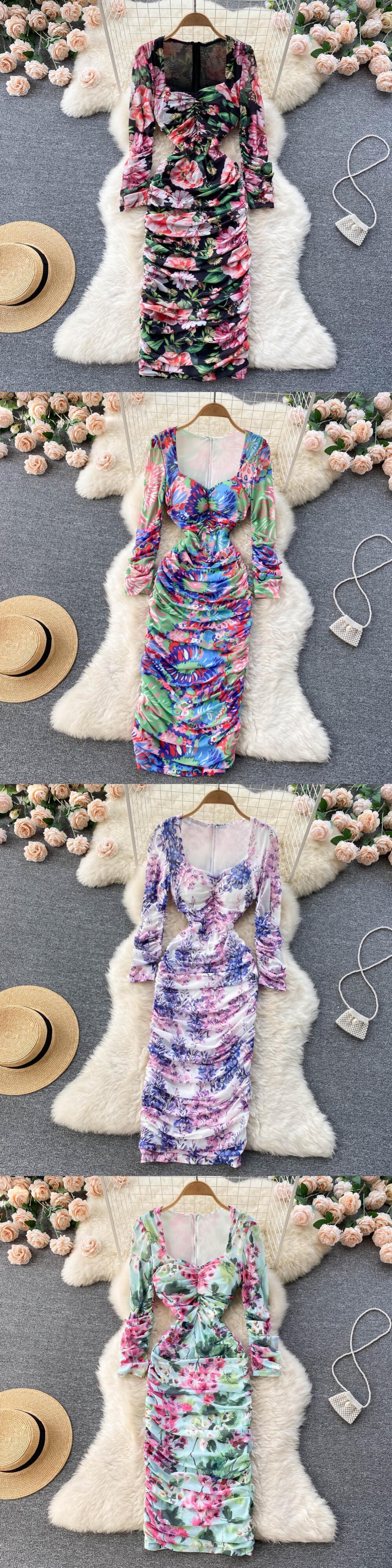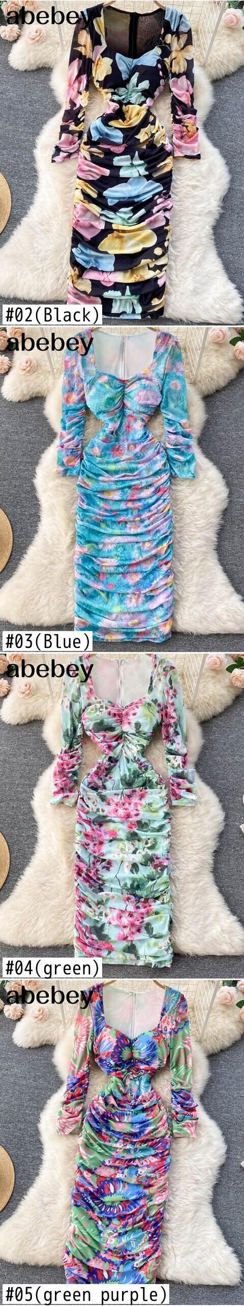 フレンチスタイルウォメドレス夏 2022 ジッパースクエアメックセクシーな休暇シャーリング長袖 A ラインロングドレス サマー 夏物 Aライン スクウェア Abe42705799287