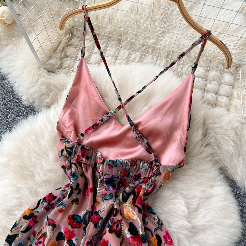 2022 セクシーな自由奔放に生きるプリントスリップドレス女性の夏の服スパゲッティストラップサイドスプリットオープンバックマキシドレスサンドレス サマー 夏物 Abe94063032467
