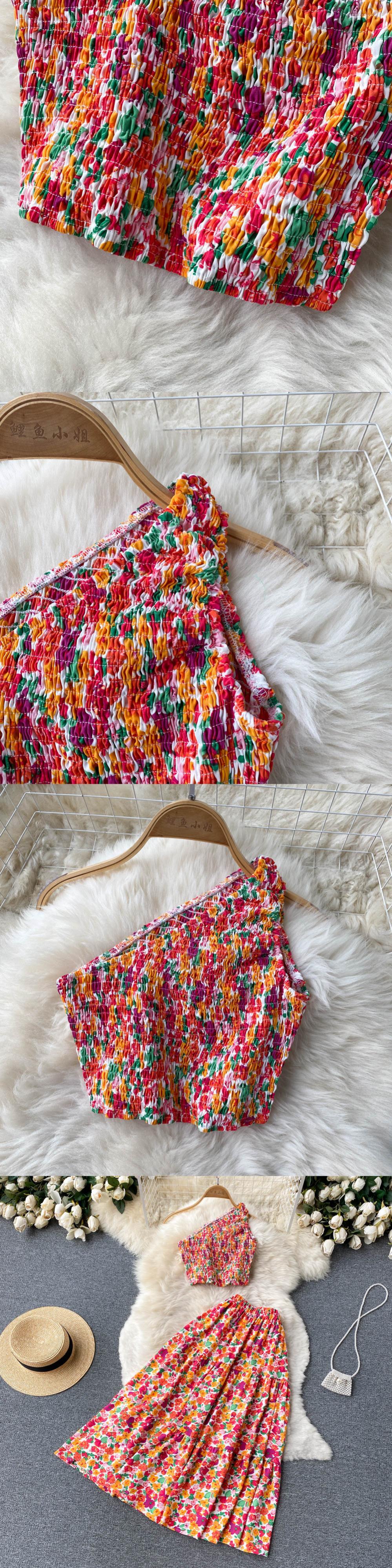 2022 夏休みセット花女性のセクシーなショートトップ + A ラインスカート 2 点セットビーチ衣装スーツ サマー 夏物 花柄 Aライン Abe30379307842