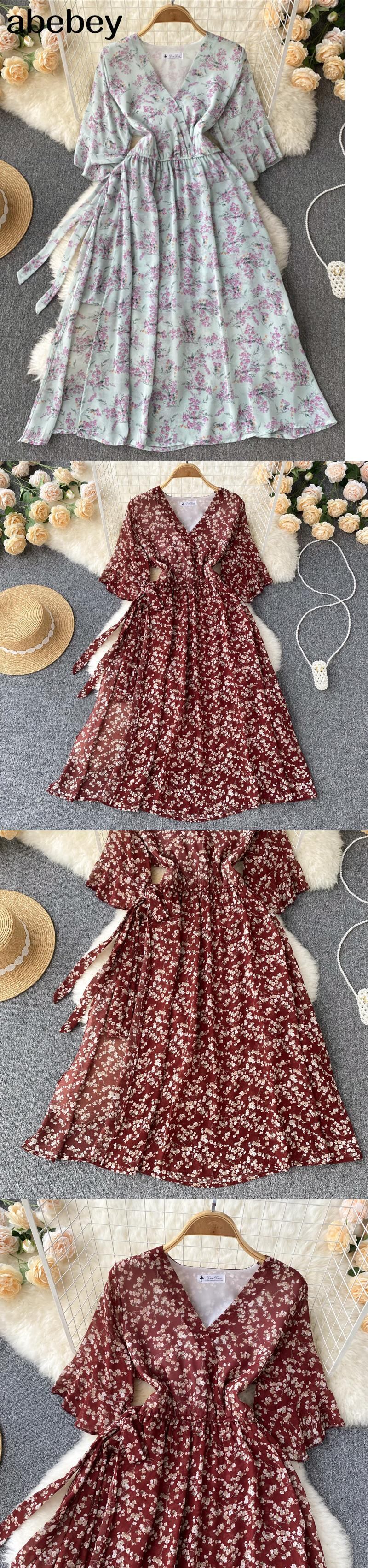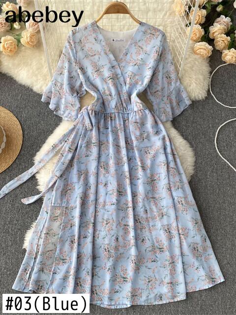 女性シフォン花ドレス V ネック半袖 A ラインドレス夏自由奔放に生きるプリントミディドレス服ビーチサンドレスローブ ショート ハーフスリーブ サマー 夏物 花柄 Vネック Aライン Abe48056223144