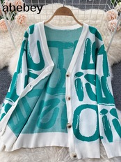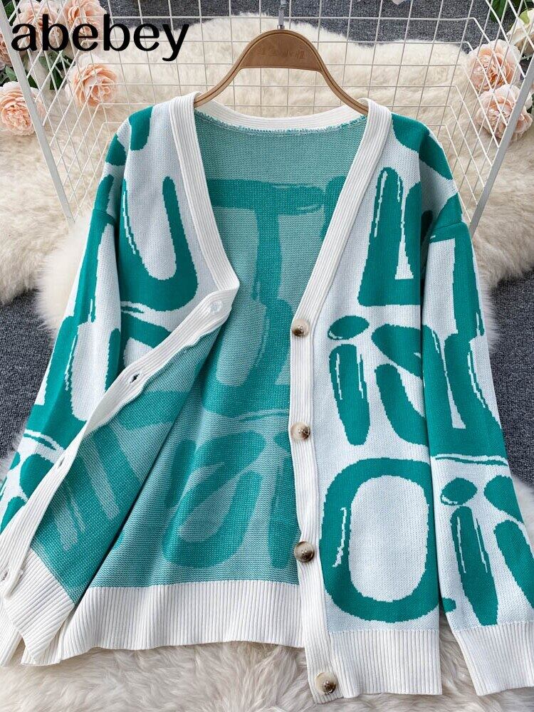 女性トラックスーツシックな 3 点セットニットレターラウンジスーツカーディガンセーター + ジョガーパンツ + ノースリーブタンクトップ Abe44506828704