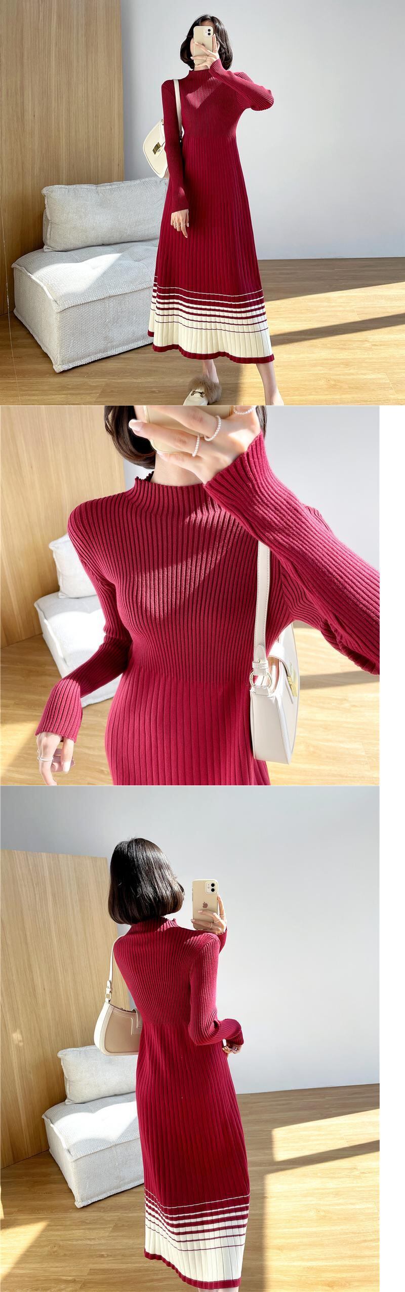 秋冬ハーフタートルネックの女性のドレス長袖 A ラインのセータードレスニット Vestidos 2021 ロング オータム 秋物 ウィンター 冬物 Aライン Rhc686413649