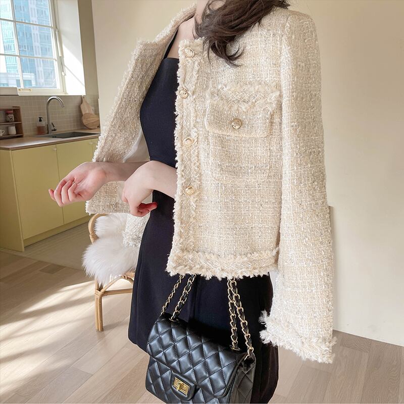小さな香りツイードジャケットコート女性シングルブレストチェック柄ウールジャケット秋冬オフィスレディ生き抜く オータム 秋物 ウィンター 冬物 会社 学校 通勤や通学にも Rhc69480443575