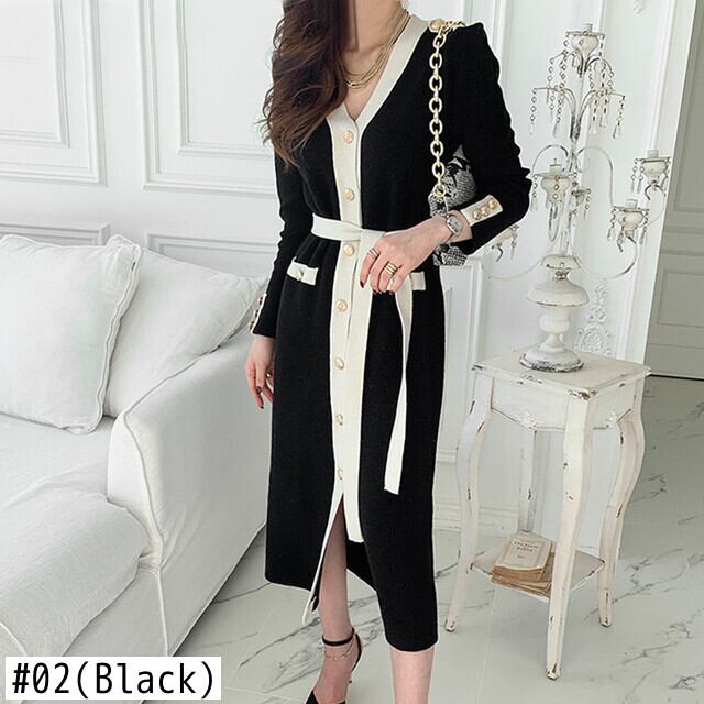 V ネックシングルブレストニットセータードレス女性ウエストヒップサッシスリム Vestidos 分割ローブ秋 オータム 秋物 Vネック Rhc89690345758