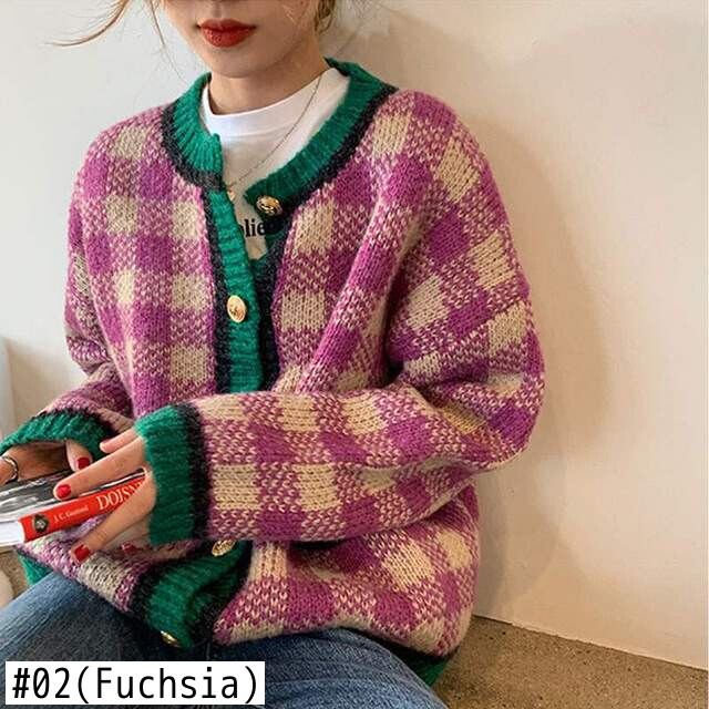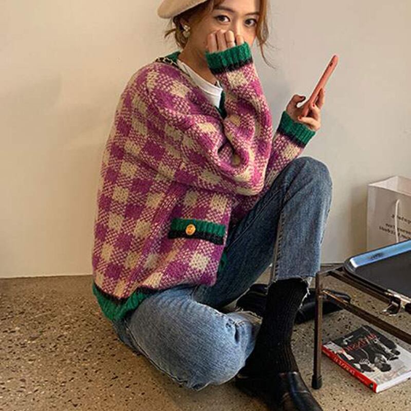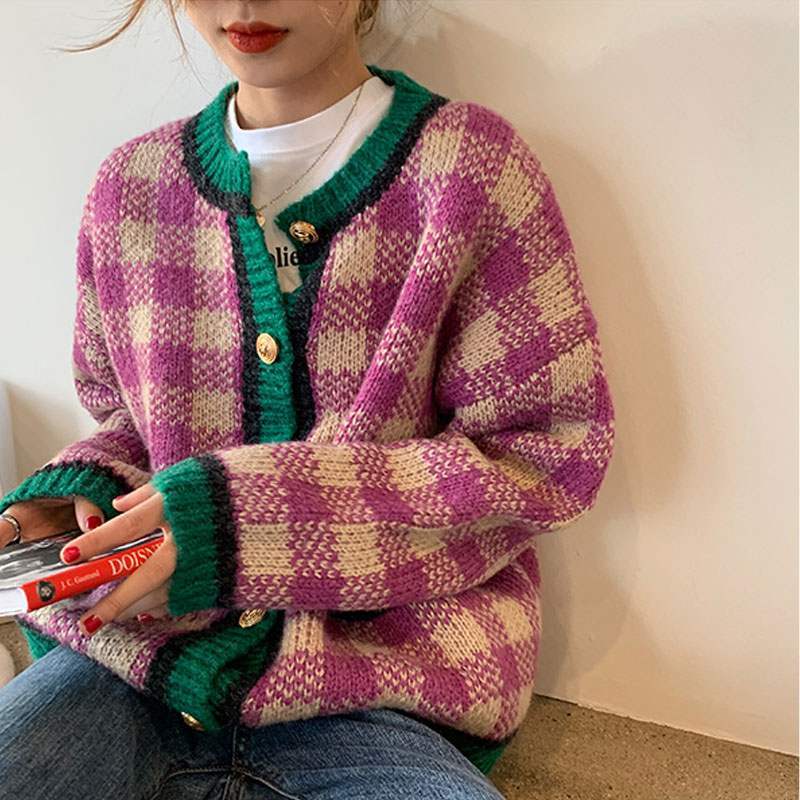 女性ニットセーターカーディガントップス 2021 秋チェック柄コントラスト O ネックオフィスレディウォームオールマッチ オータム 秋物 Oネック 会社 学校 通勤や通学にも Rhc36522289850