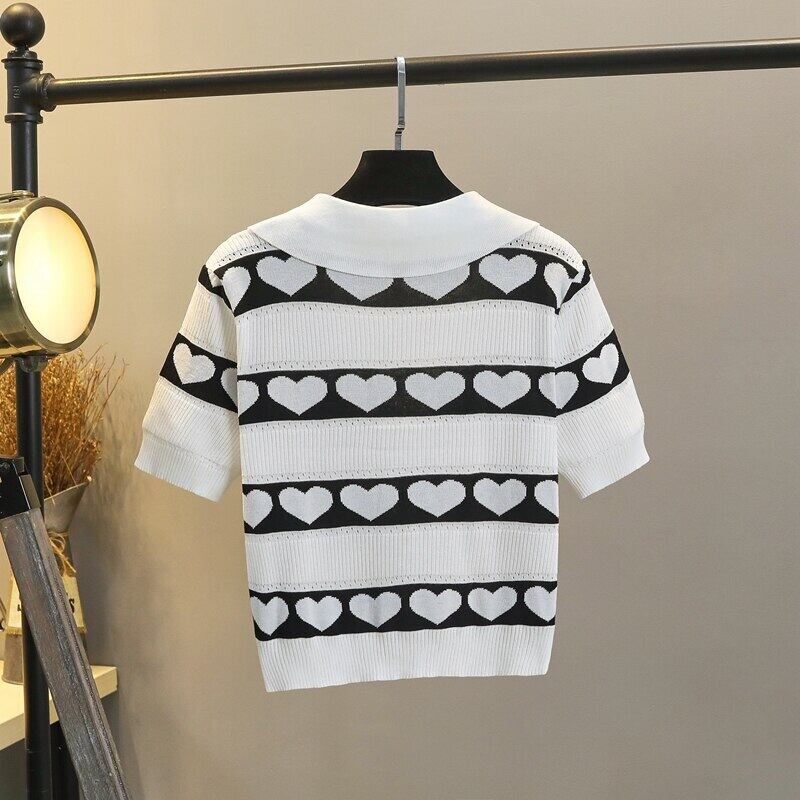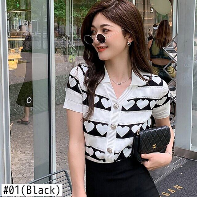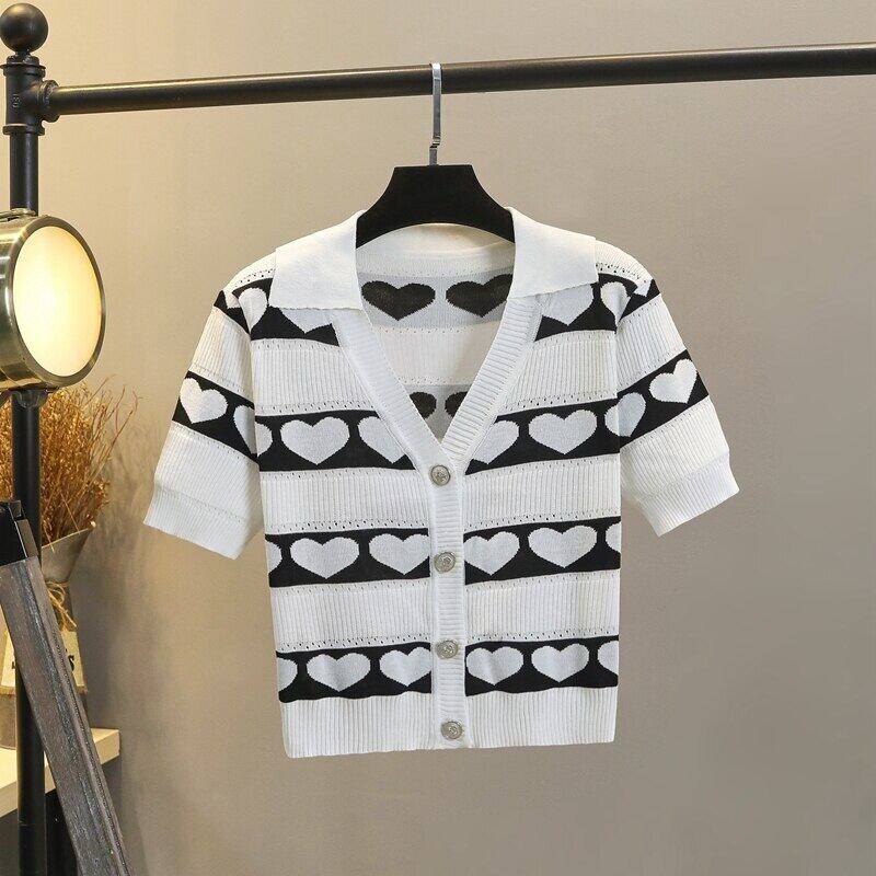 夏ピーチハートニット甘いレディース V ネック薄いニットセーター半袖シングルブレストカーディガントップス ショート ハーフスリーブ 大人ガーリー スウィート キュート カジュアル サマー 夏物 Vネック Rhc64041417287