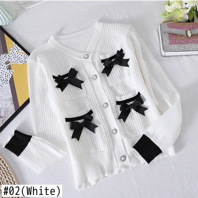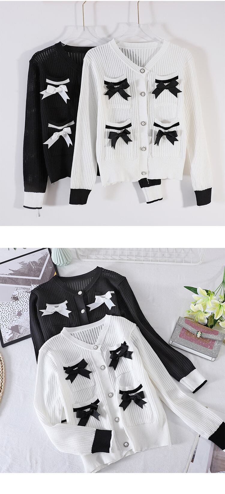 2021サマーセーターニットカーディガンレディースショートセーターボウポケットジャケット リボン 夏物 Rhc18395529936