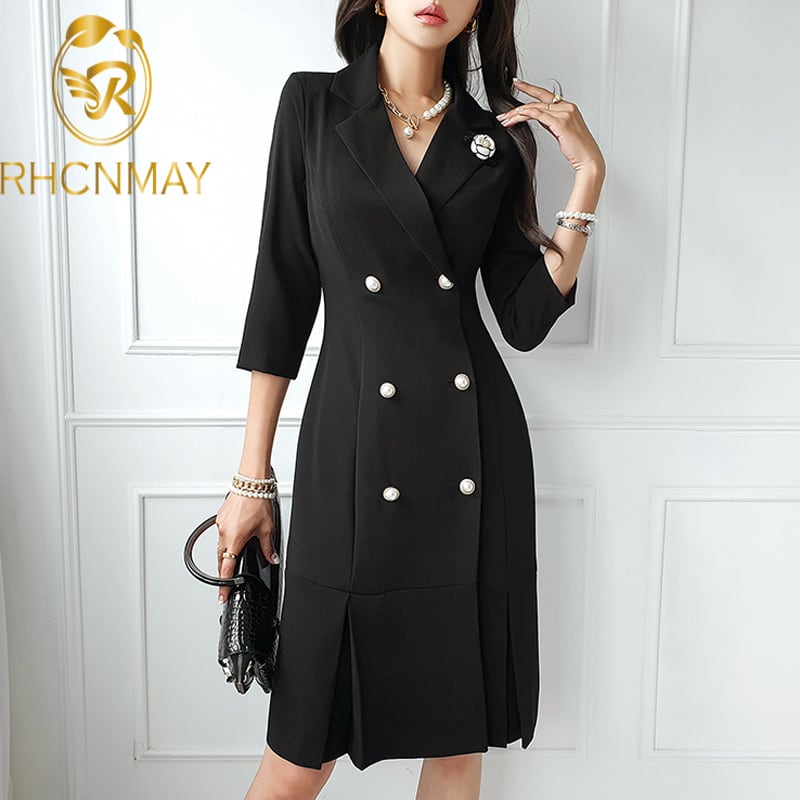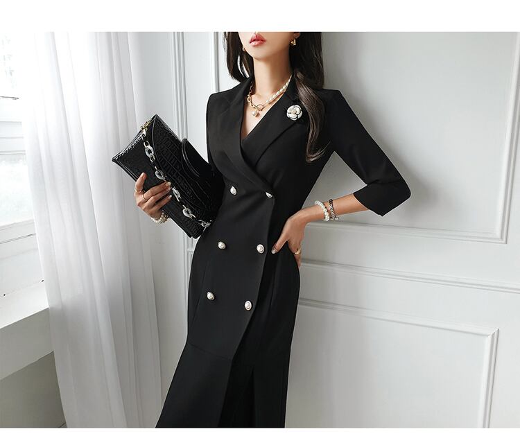 オフィスレディダブルブレストスリムブレザードレス 2022 秋の女性ノッチ襟作業服 mal 三四半期ドレス オータム 秋物 会社 学校 通勤や通学にも Rhc46259332900