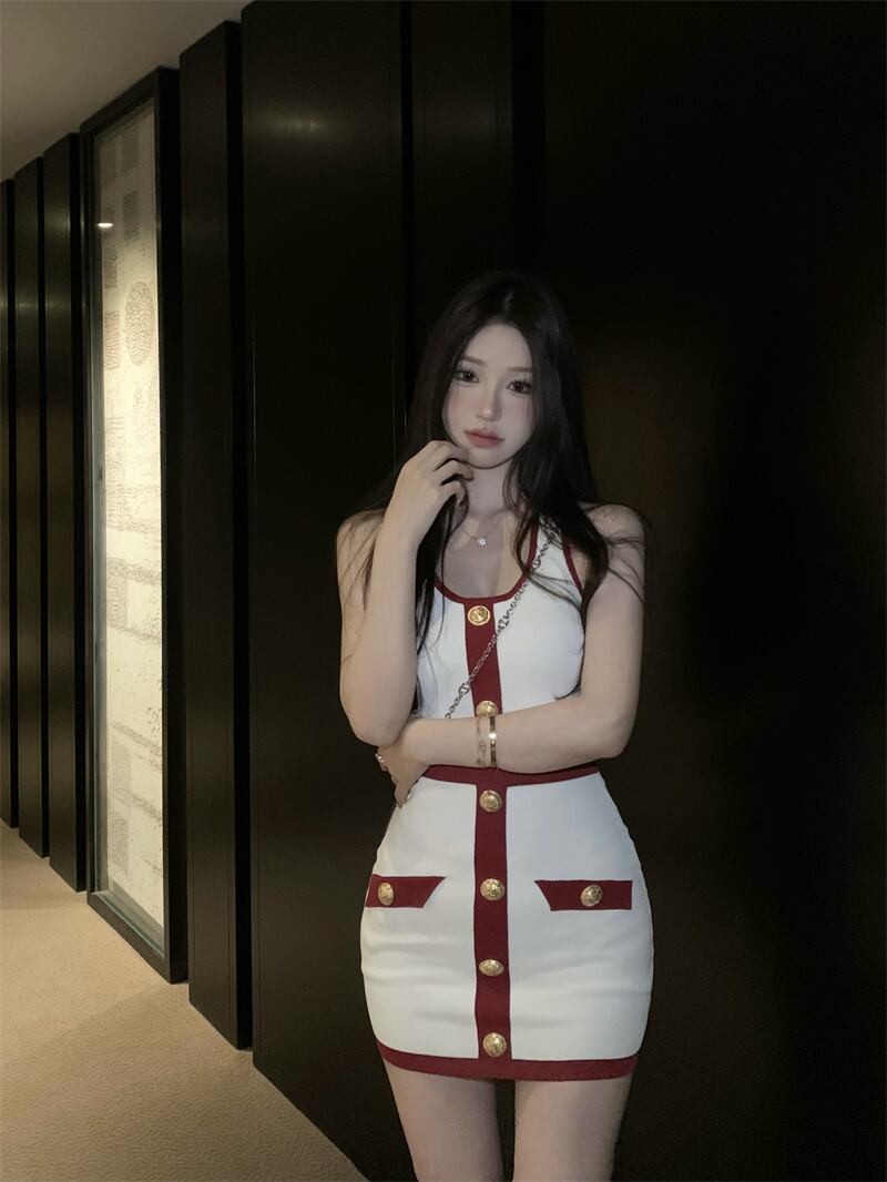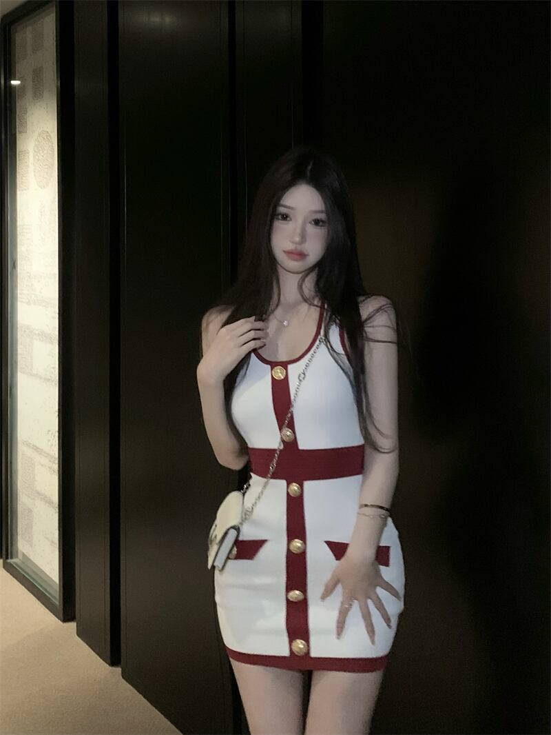 秋の女性の小さな香り O ネック ニット セーター ストライプ ノースリーブ シングルブレスト ドレス オータム 秋物 Oネック Rhc55622220234