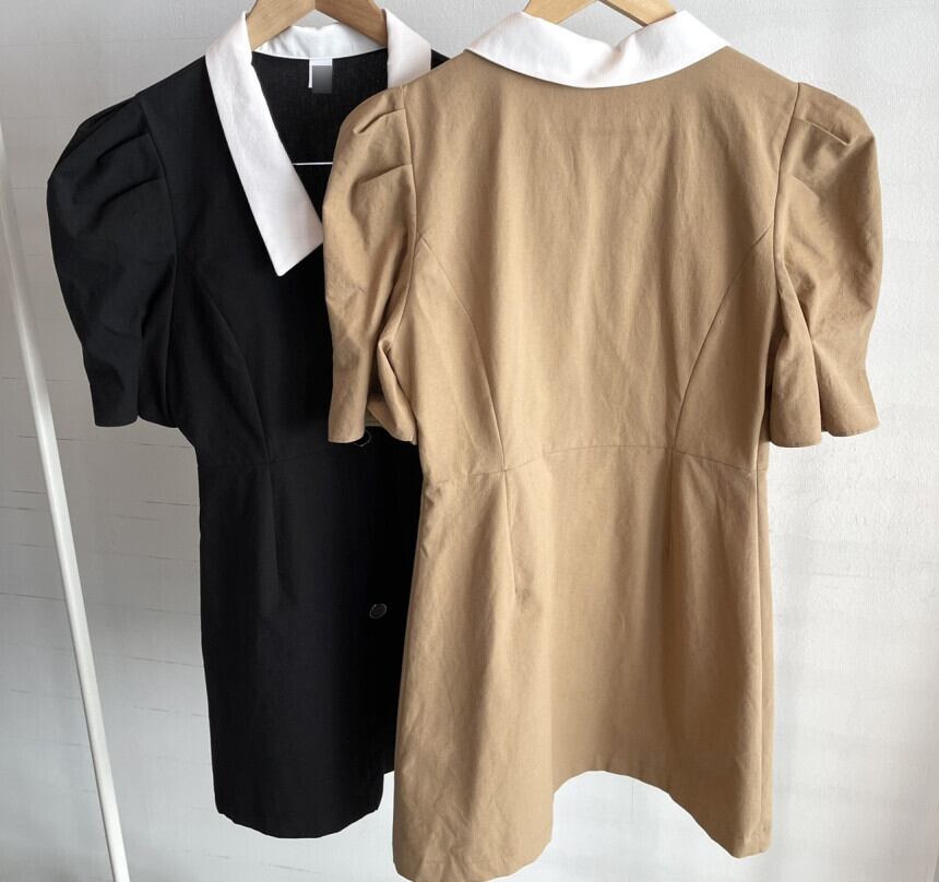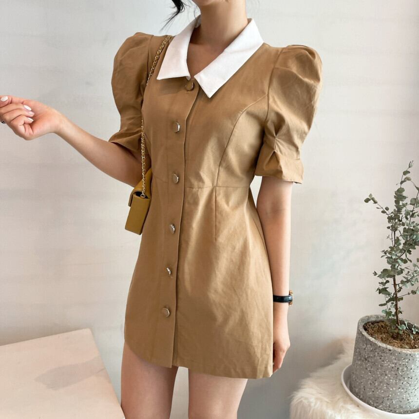 女性ドレス 2021 シックな夏の気質ラペルシングルブレストスリムウエストパフスリーブドレス Vestidos サマー 夏物 Rhc67133461424