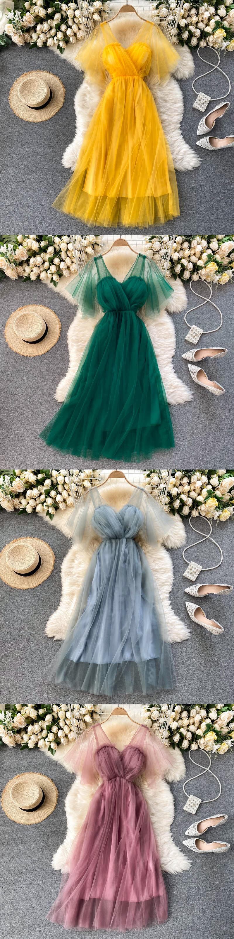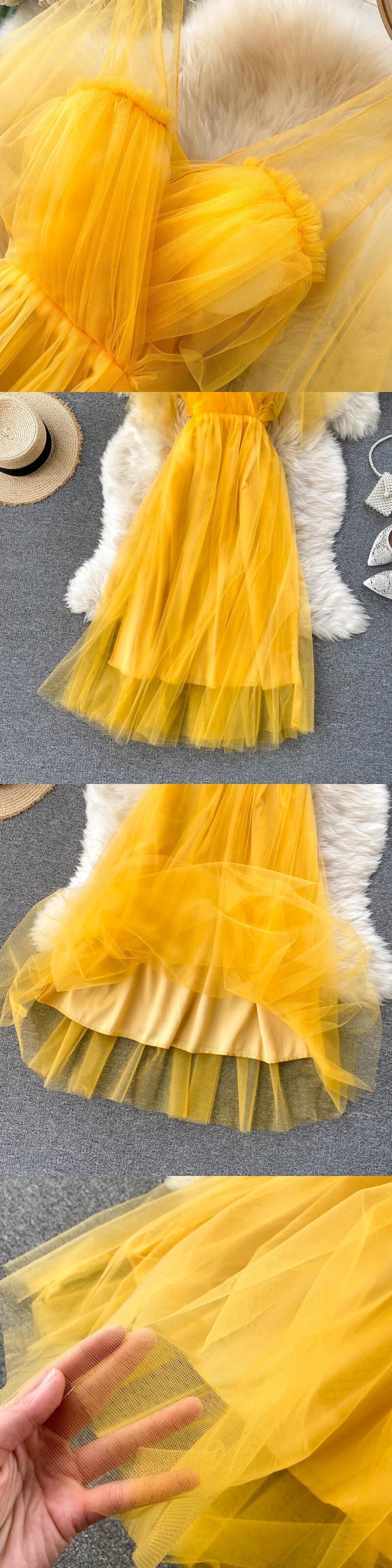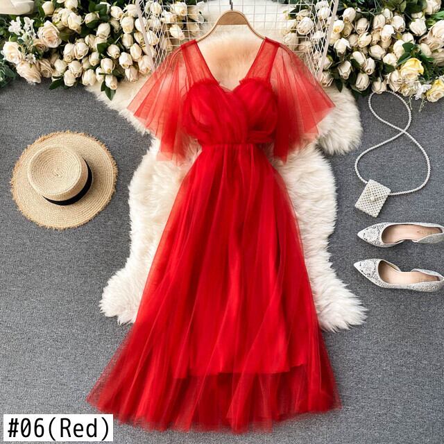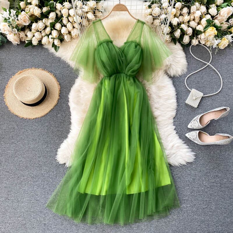 フレンチスウィートメッシュドレス女性 V ネックノースリーブセクシーな A ラインパーティードレス夏のロマンチックな休日のビーチミディロングドレス 大人ガーリー キュート カジュアル サマー 夏物 Vネック Aライン Abe20570872144